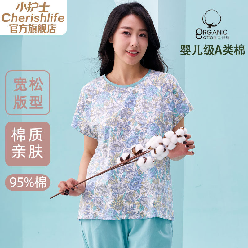 短袖 宽松加大码 睡衣上衣可外穿 A类棉薄款 小护士家居服上衣女夏季