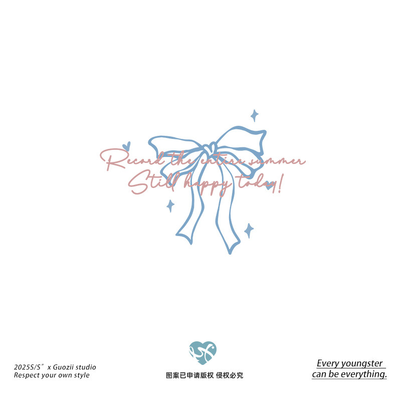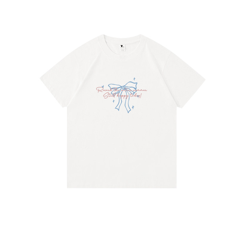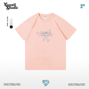 Guozii白色纯色基础款 t恤女蝴蝶结印花宽松显瘦纯棉体恤 正肩短袖