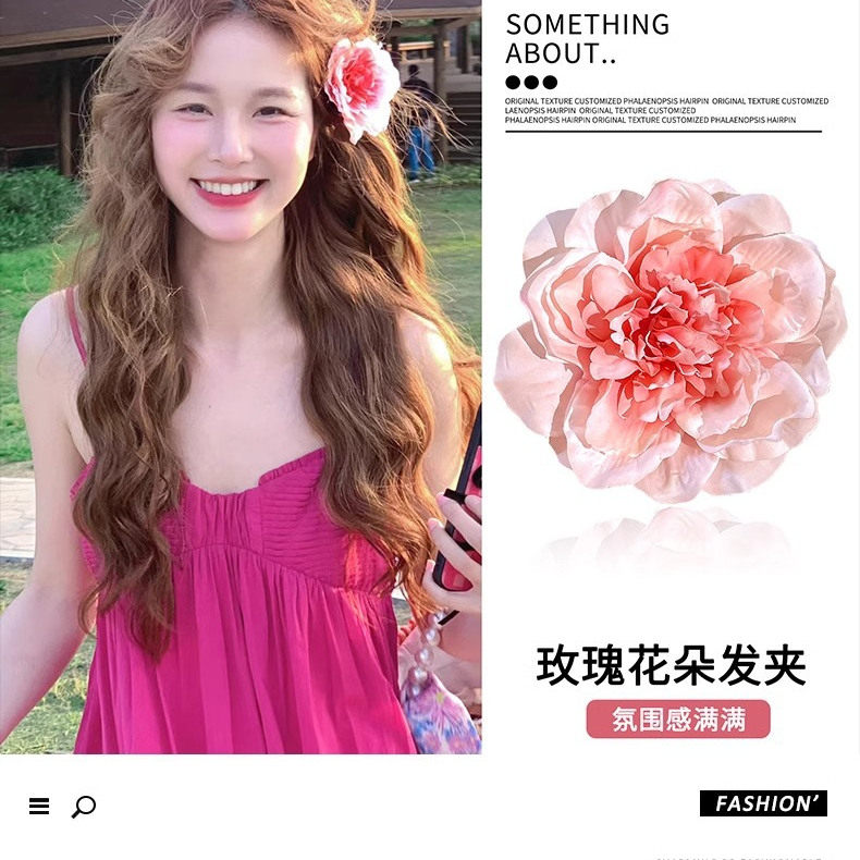 高颜值新款 古风牡丹花发夹超仙侧边夹子头饰花朵氛围配饰拍照发饰