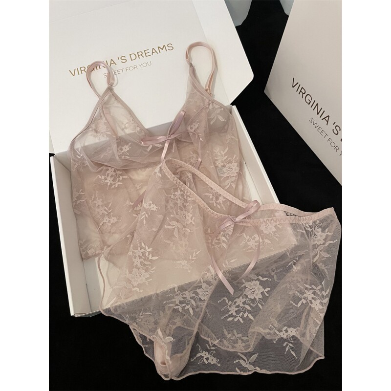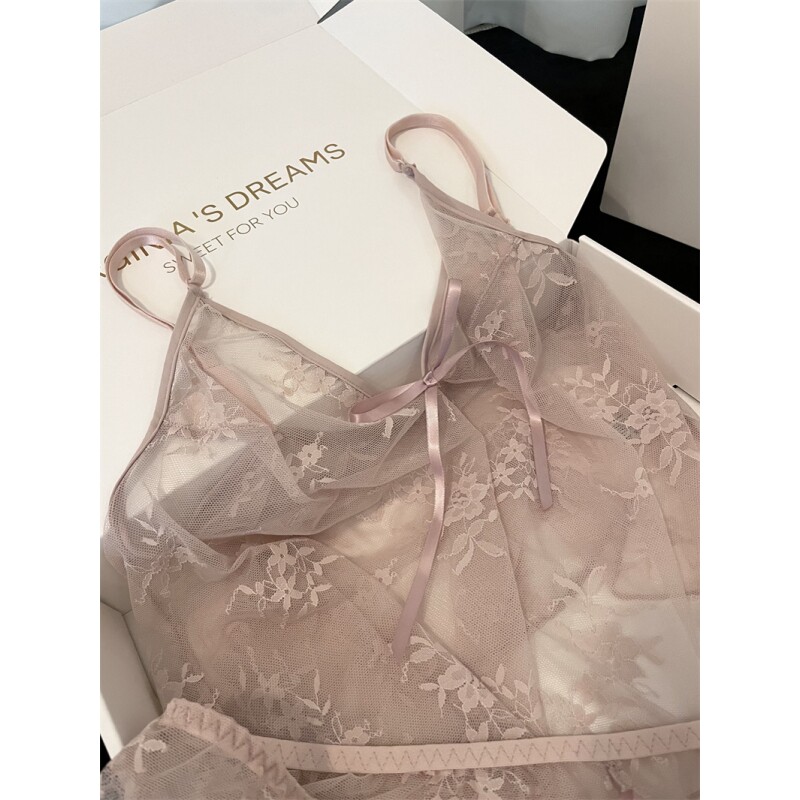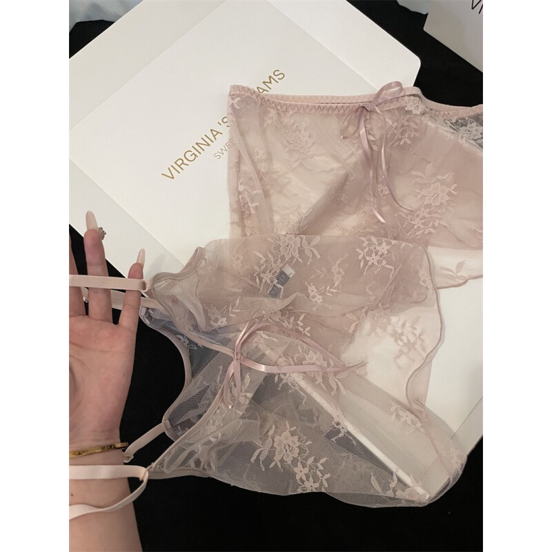 少女纯欲风性感****蕾丝网纱吊带睡衣女夏季 家居服两件套 背心短裤