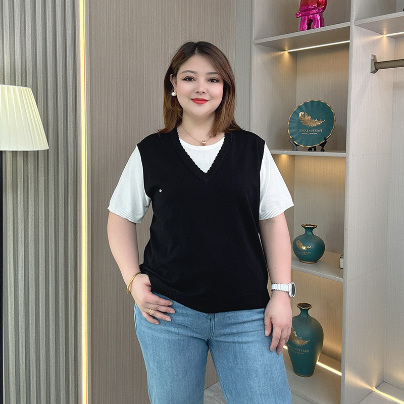 学院风polo领假两件针织毛衣女2025秋冬新款 内搭上衣 英伦大码