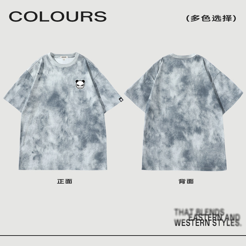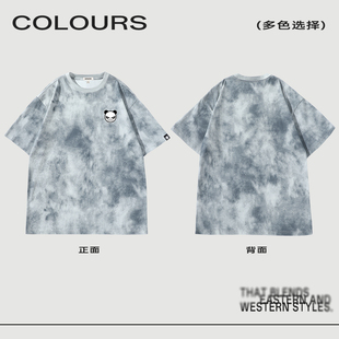 复古T恤C 美式 Hipanda你好熊猫蜡染渐变潮牌休闲短袖 男2025夏新款