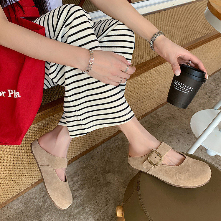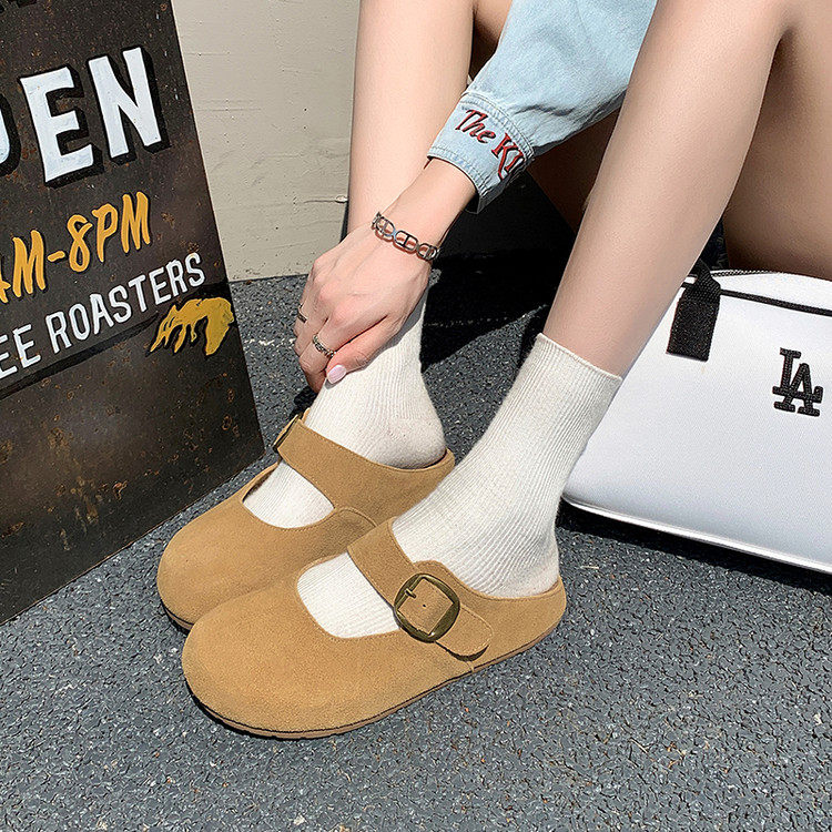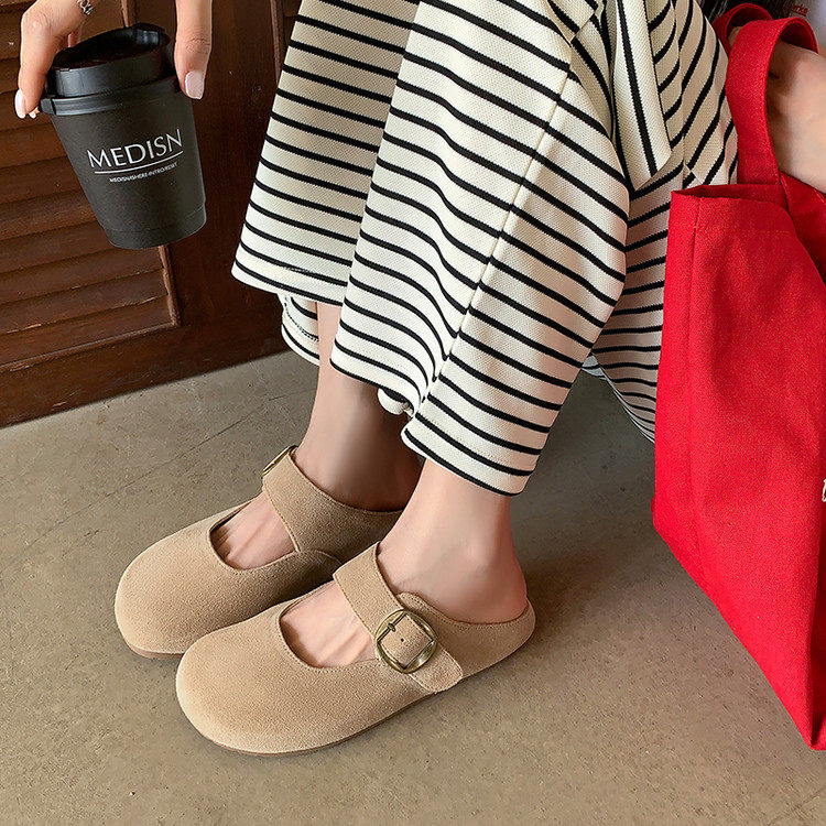 软底勃肯鞋 新款 一脚蹬包头半拖鞋 外穿穆勒鞋 骆驼女鞋 单鞋 2026春季