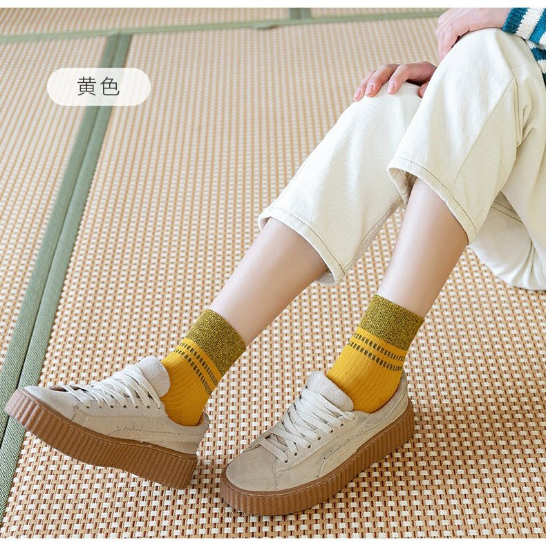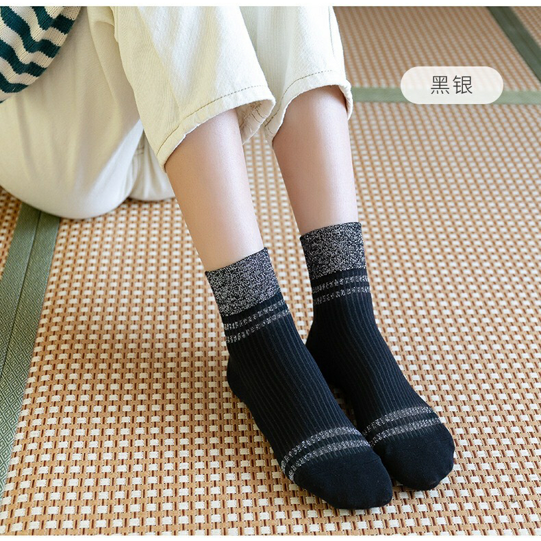 防裂袜女中筒银葱秋季 亮丝百搭棉袜复古脚后跟干裂袜脚裂袜足裂袜