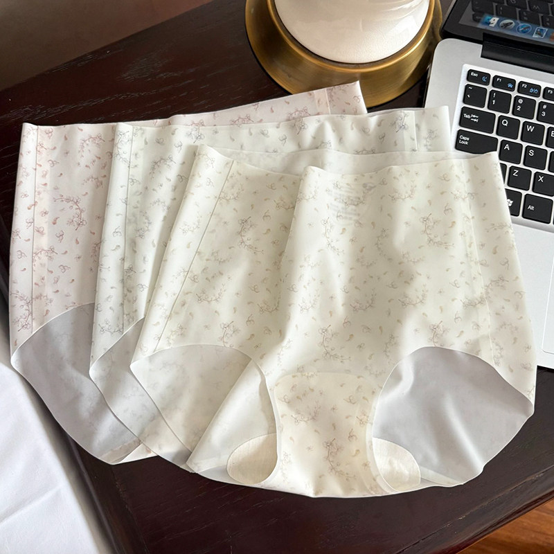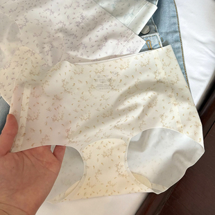 超薄裸感碎花冰丝无痕少女内裤 夏 3D立体蜜桃臀中腰包臀速干三角裤
