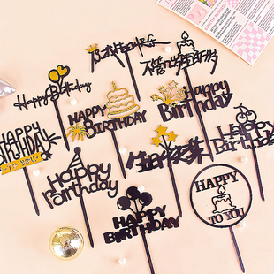 生日快乐亚克力蛋糕装 birthday不管几岁生日万岁插件 饰插牌happy