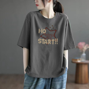 一线品牌专柜高端即墨短袖 宽松显瘦慵懒风印花纯棉上衣 t恤女夏季