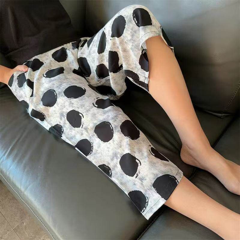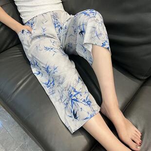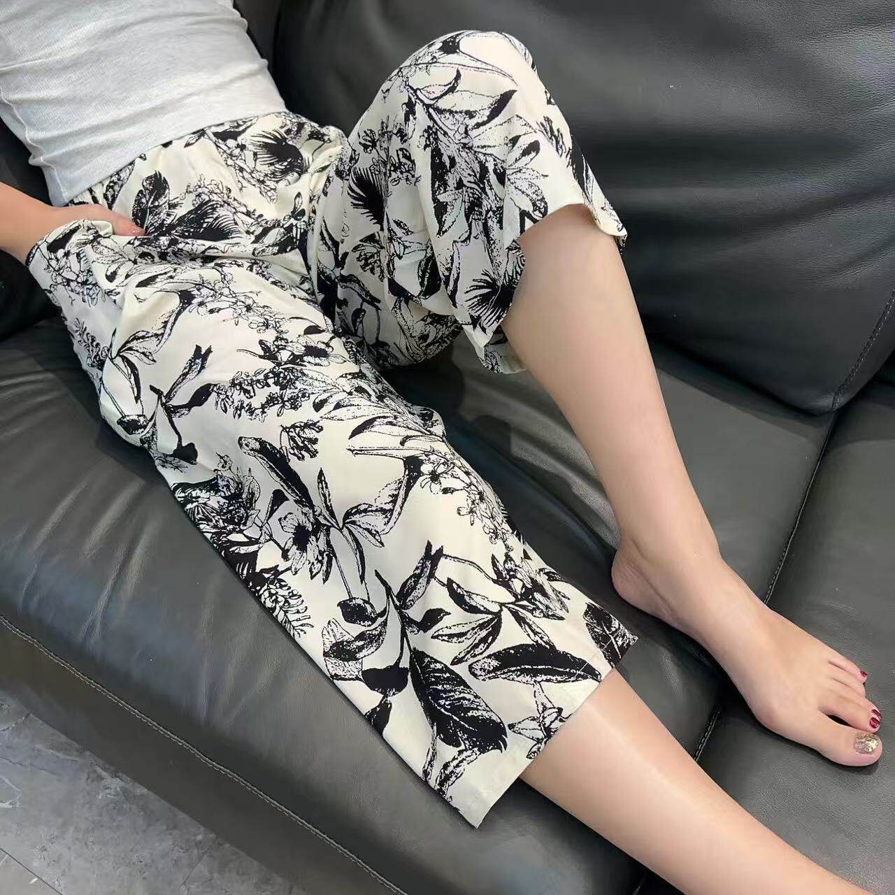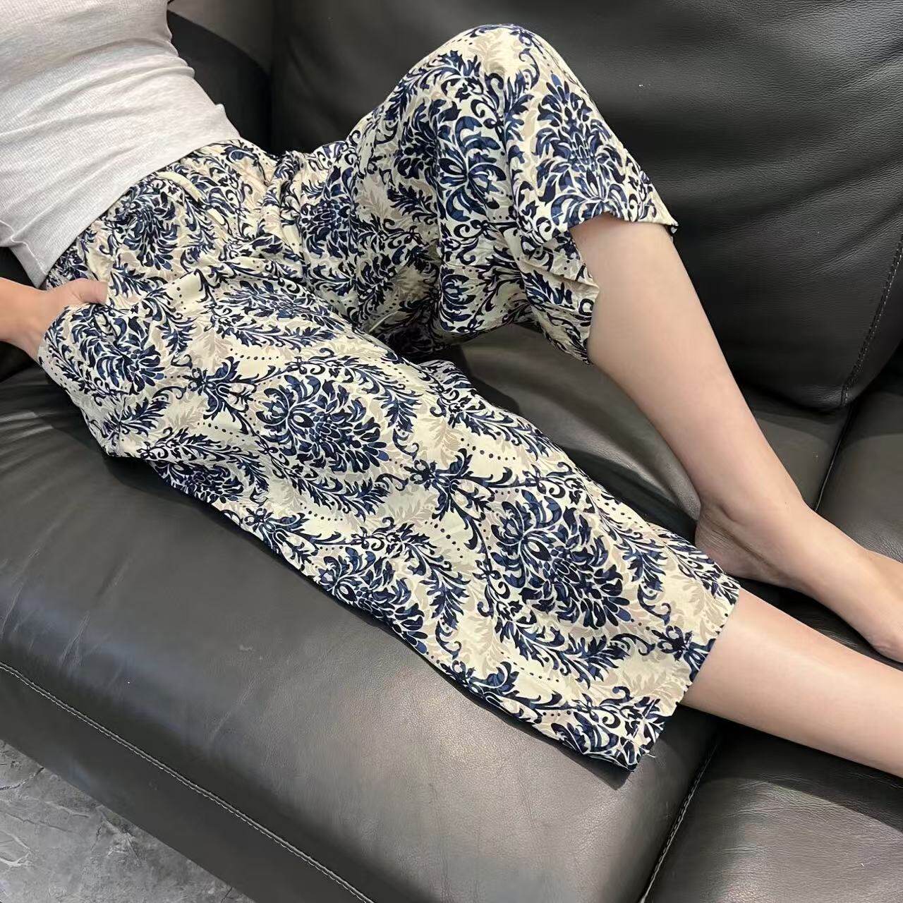 纯棉绸阿姨7分裤 200斤中年妇女夏天空调睡裤 宽松大码 胖妈妈七分裤