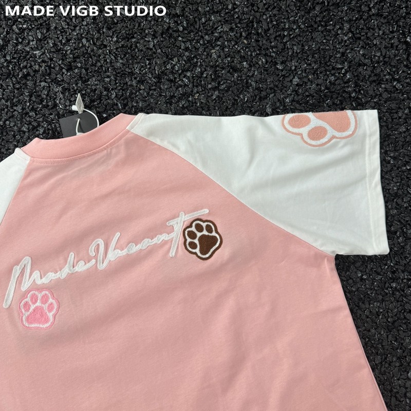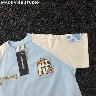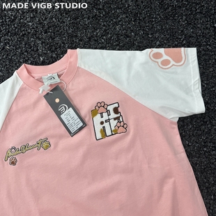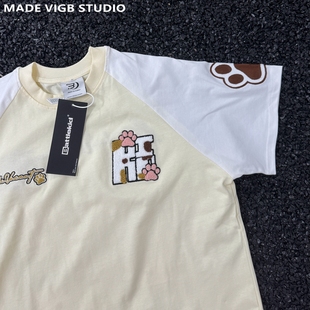 VIGB 原创国潮卡通趣味植绒小狗掌印刺绣T恤童真休闲男女情侣短袖