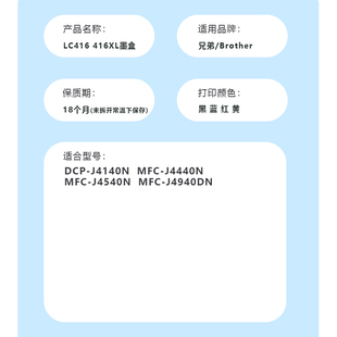 商品标签:LC416XL墨盒DCPJ4140N
