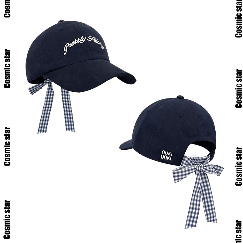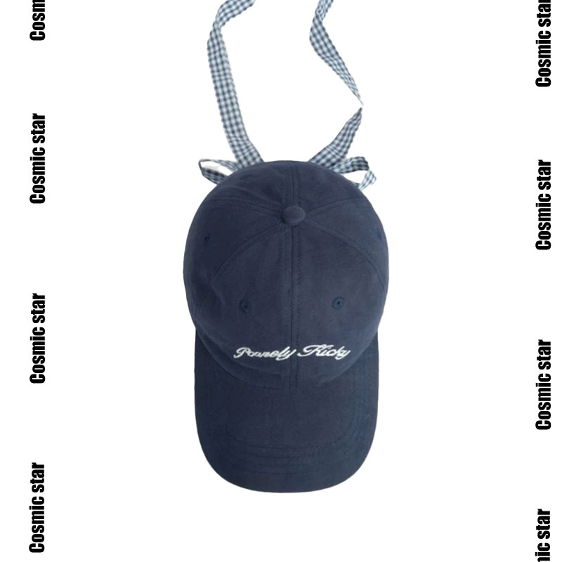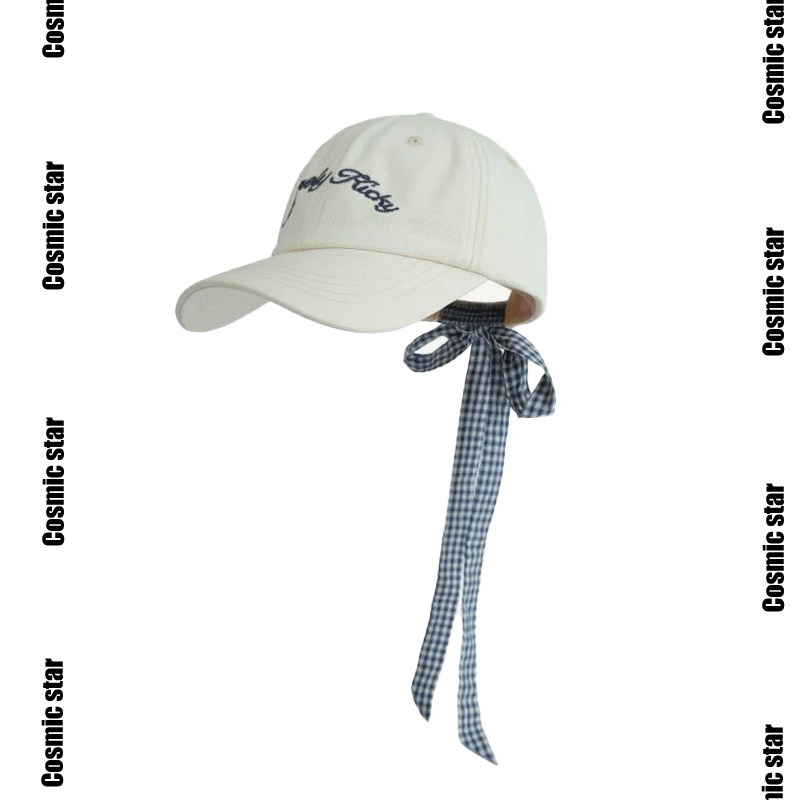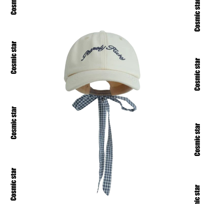 2025新款 蝴蝶结绑带复古格纹字母刺绣棒球帽女春夏百搭鸭舌帽 韩版