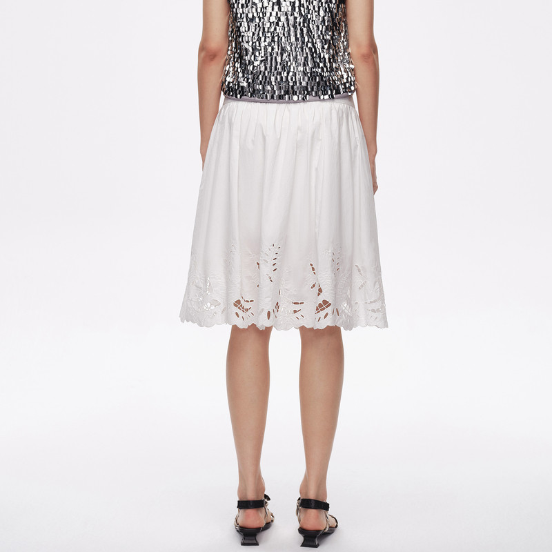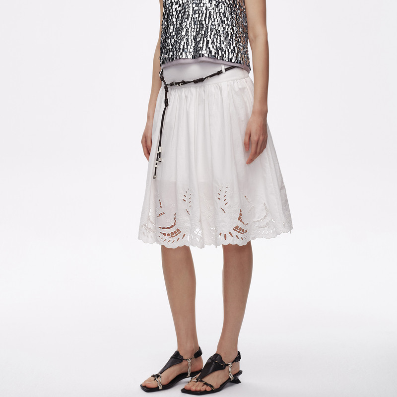 AVVENN设计师款 抽褶A型中低腰伞裙半身裙AL31503797