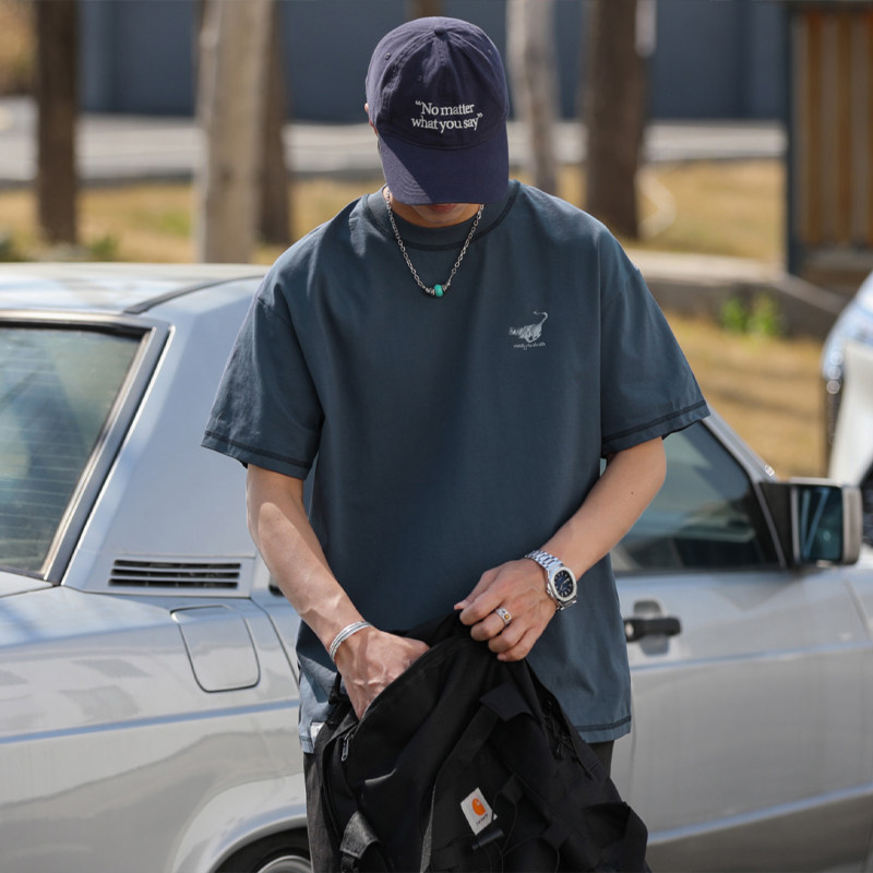 250gHEEMKIZOO索罗娜UPF50 T恤男速干 日系复古凉感夏圆领印花短袖