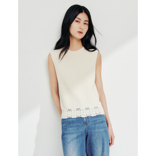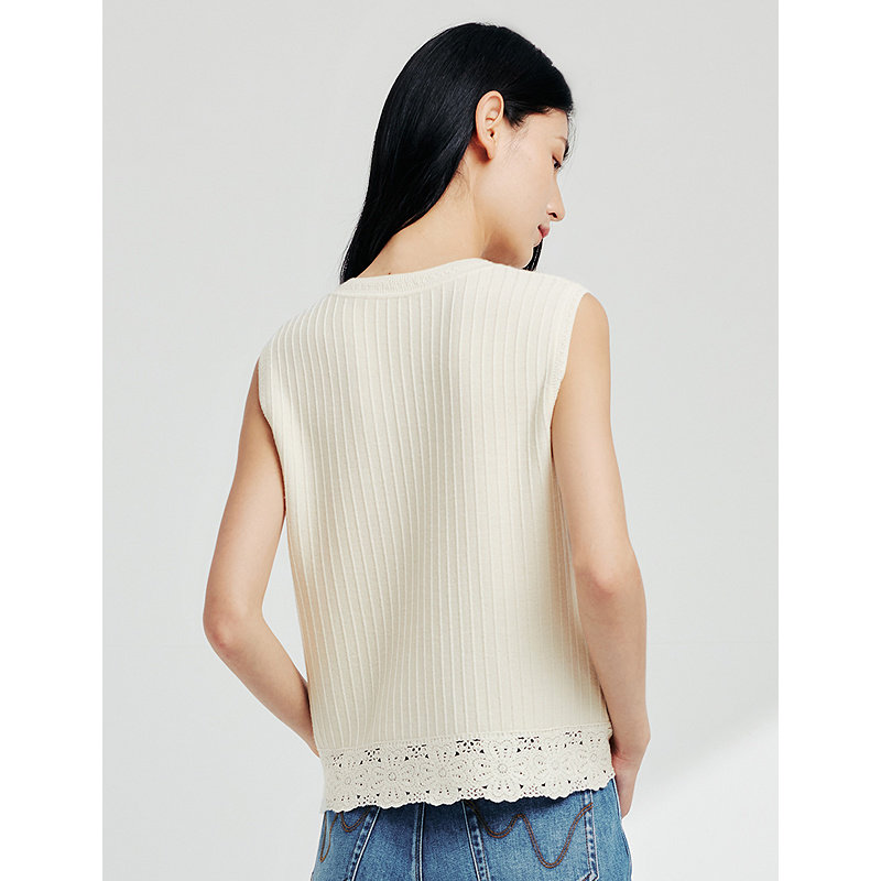文艺提花针织背心2025春季 ELSEWHERE珂思时尚 新款 美丽诺羊毛