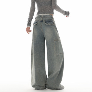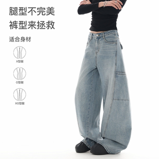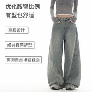 宽松显瘦拖地直筒裤 2025新款 子 女秋冬季 美拉德高腰加绒阔腿牛仔裤