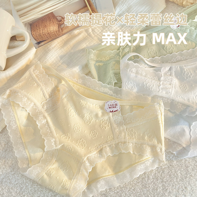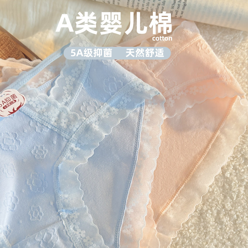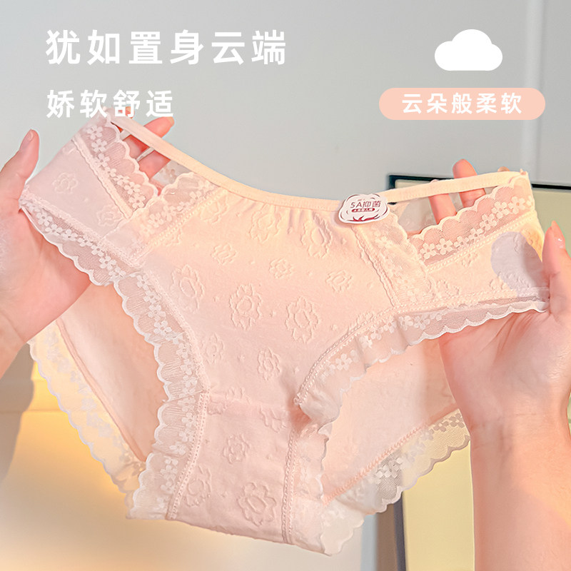 头 女纯棉抗菌无痕中腰包臀性感提花三角裤 夏季 5A云朵婴儿棉内裤