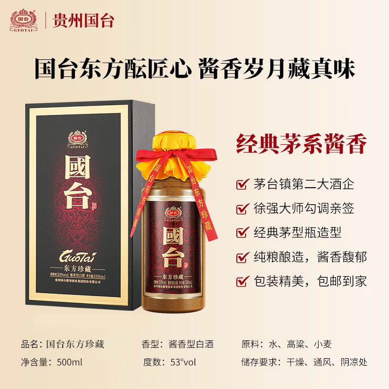 国台酒东方珍藏53度500ml 纯粮酿造送礼 6酱香型白酒官方正品