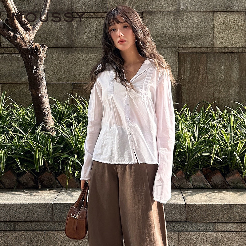 遮肚藏肉春装 宽松休闲通勤衬衣大码 衬衫 胖mm白色纯色职业百搭长袖