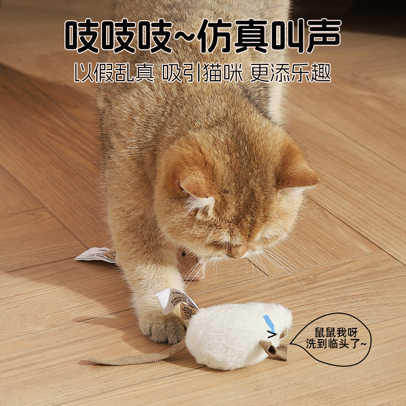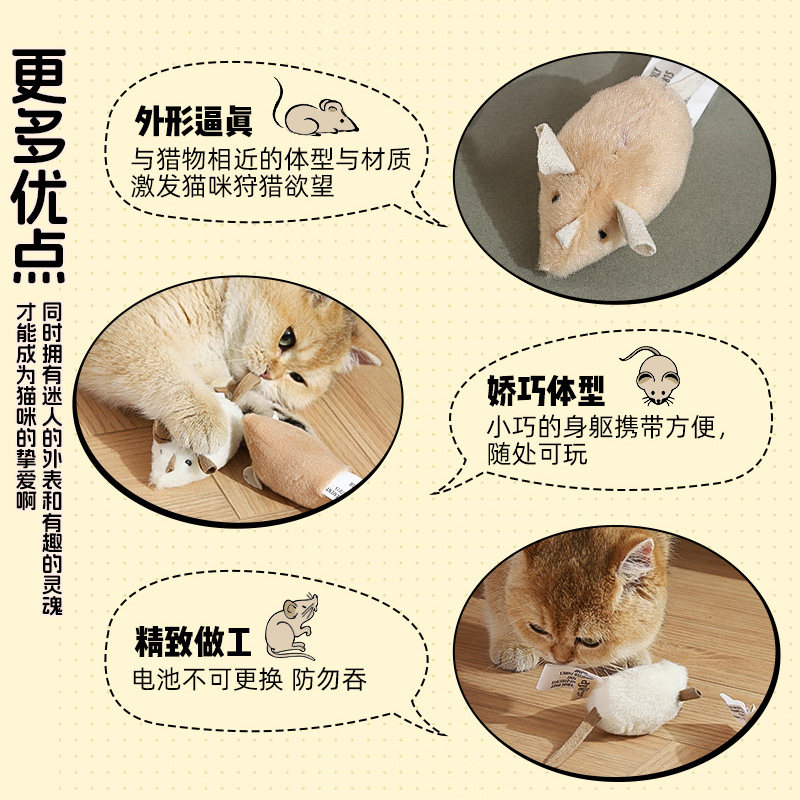 元 猫玩具自嗨解闷神器电动仿真小老鼠发声猫用品afp逗猫棒 気喵