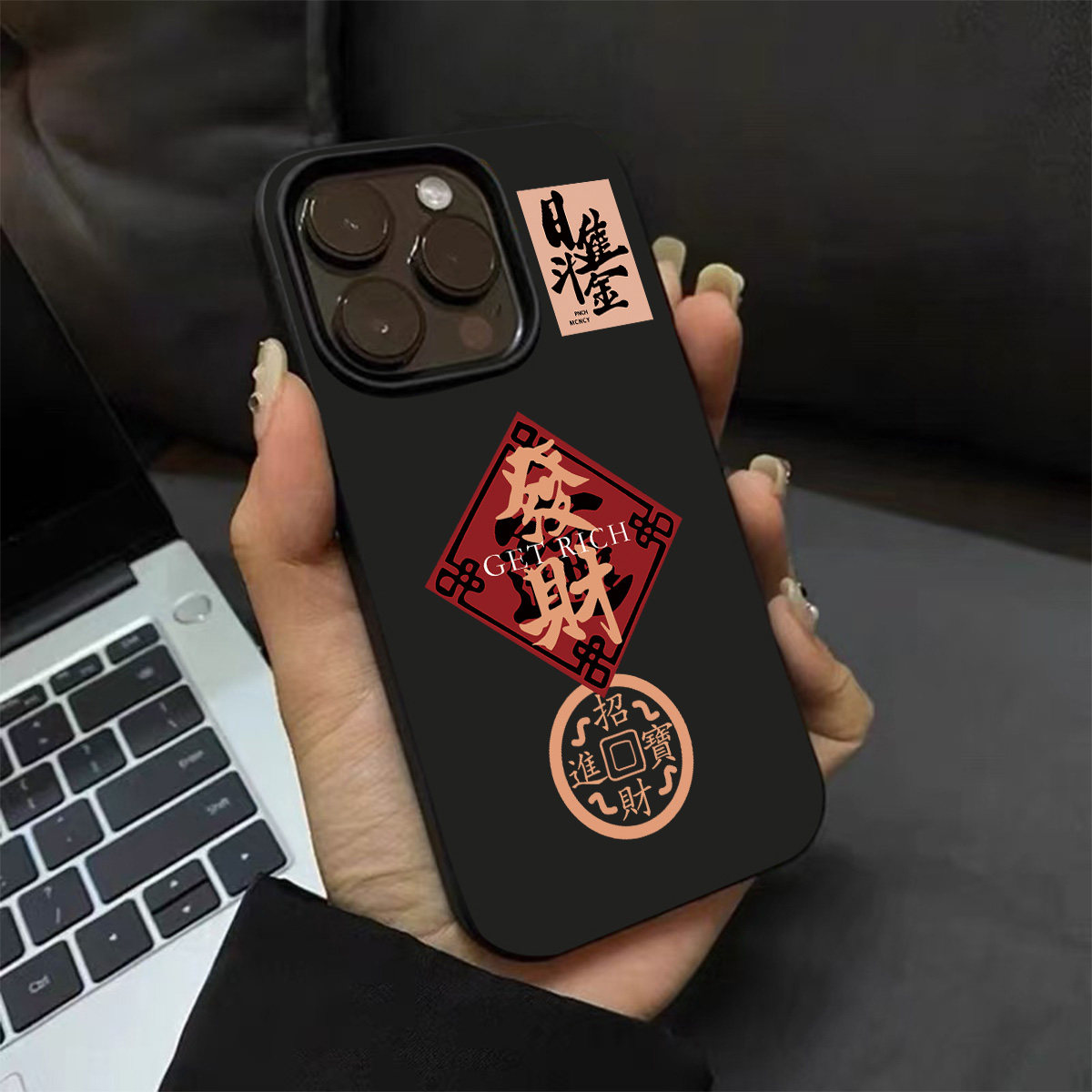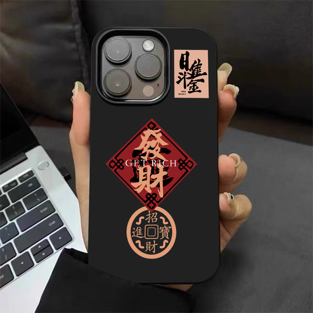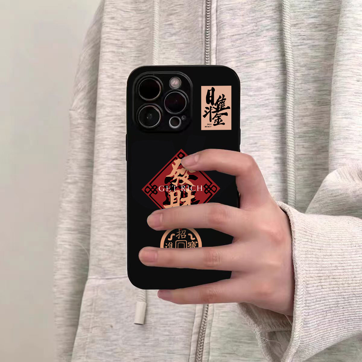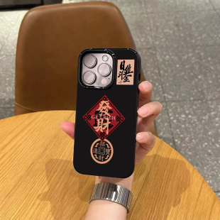 ins新年款 iphone15硅胶14pro亮黑色13男女12磨砂超薄16全包防摔软壳 招财进宝文字手机壳适用苹果17promax新款