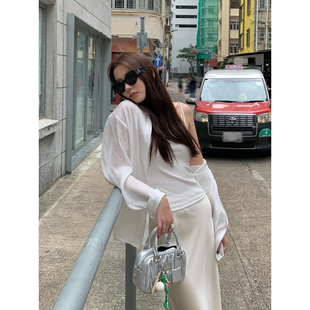 宽松外套开衫 Halo 薄款 女夏季 外搭垂感衬衣 Luu白色海岛丝防晒衬衫