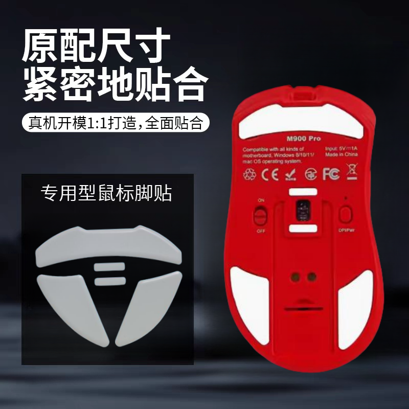 弧边顺滑 特氟龙冰版 适用多彩M900pro鼠标脚贴替换型超轻版 底座版