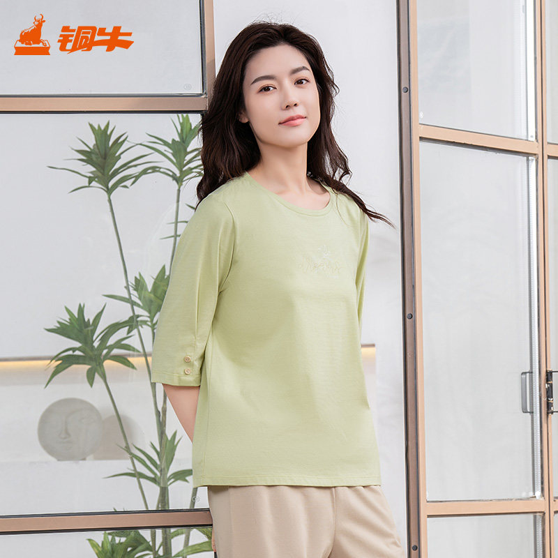 纯棉休闲女T恤VS348 2025春夏新款 铜牛冰爽棉印花圆领六分袖 女衫