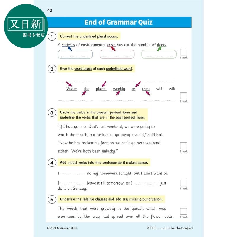 Book 又日新 英语语法标点拼写阅读理解练习册 Spelling Punctuation Grammar Question Targeted English CGP 英国原版