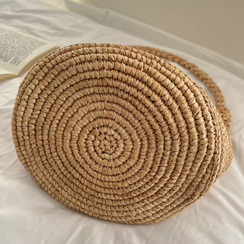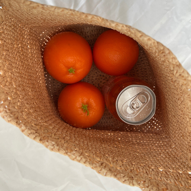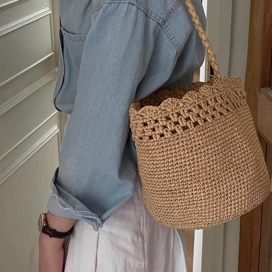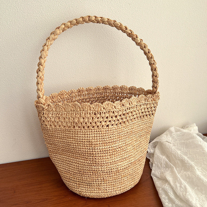100%拉菲草手编包女包法式 镂空花边水桶包腋下包手拎菜篮子沙滩包