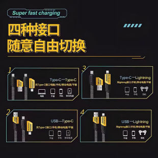 120氮化镓充电头四合一机甲套装 gan充电器超级快充一拖三数据线适用华为苹果OPPO小米手机一加66插头三合一