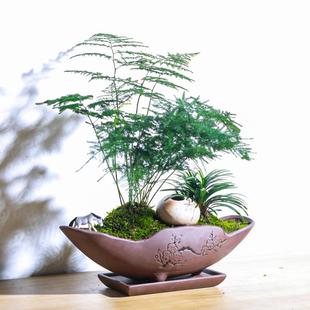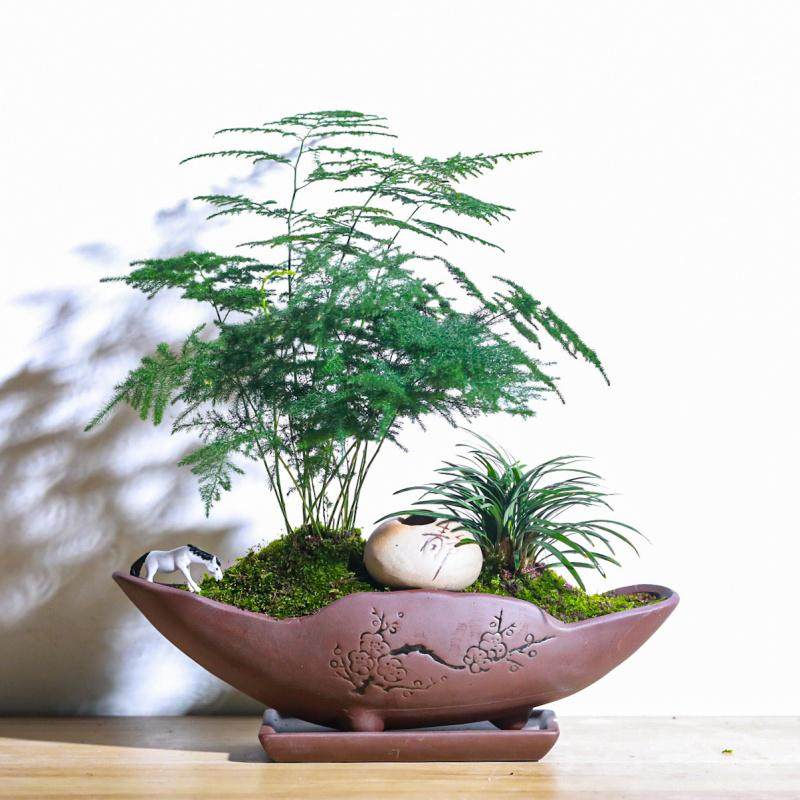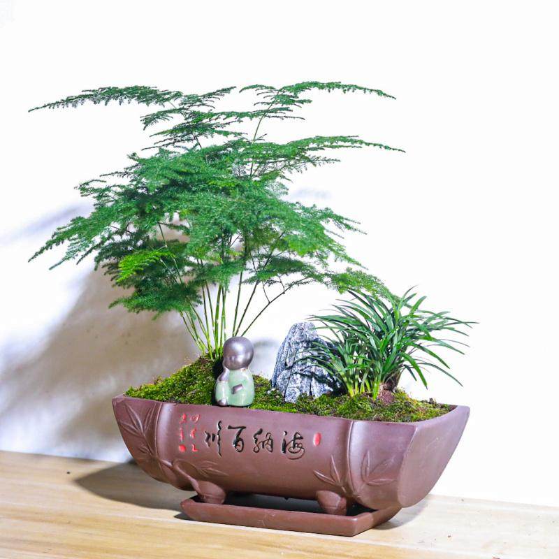 文竹盆栽植物室内客厅中式 禅意盆景绿植办公室摆件高端花卉好养活