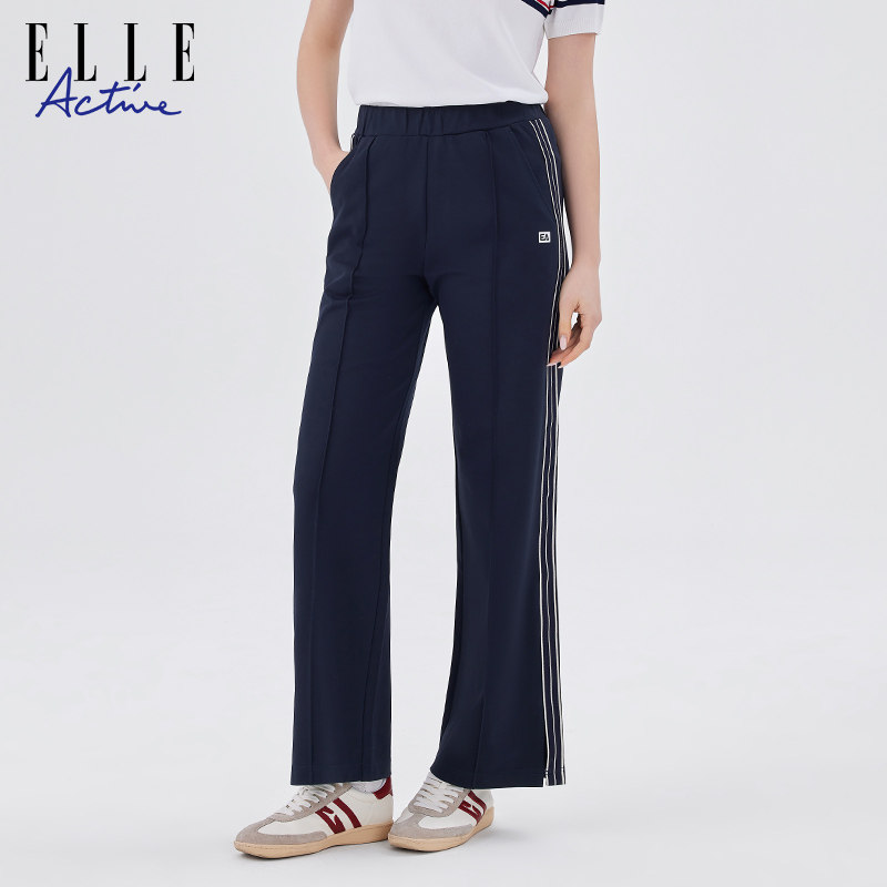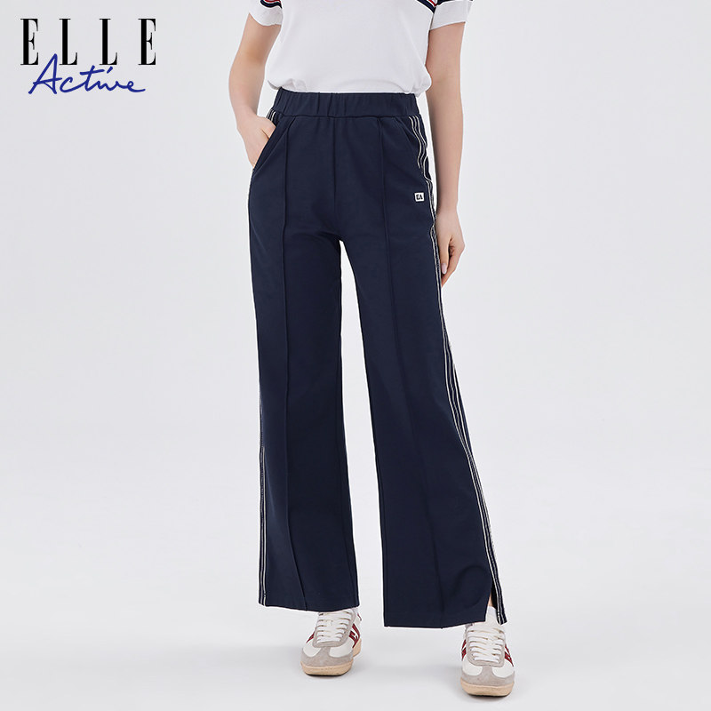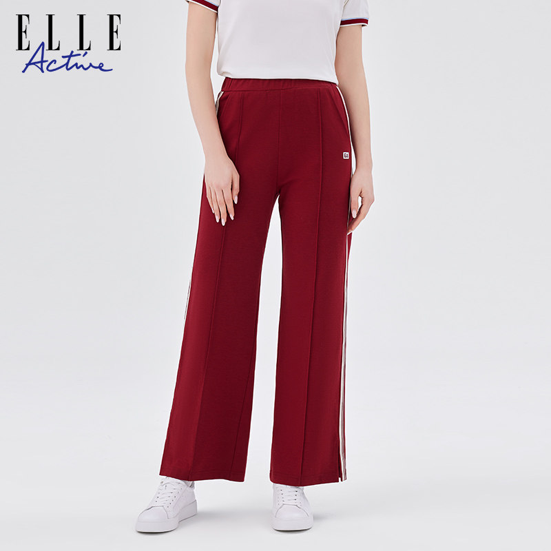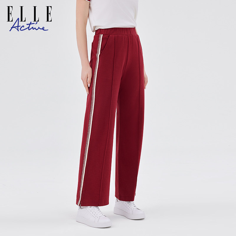 宽松休闲裤 女侧条纹阔腿直筒裤 Active活力户外红色运动长裤 ELLE