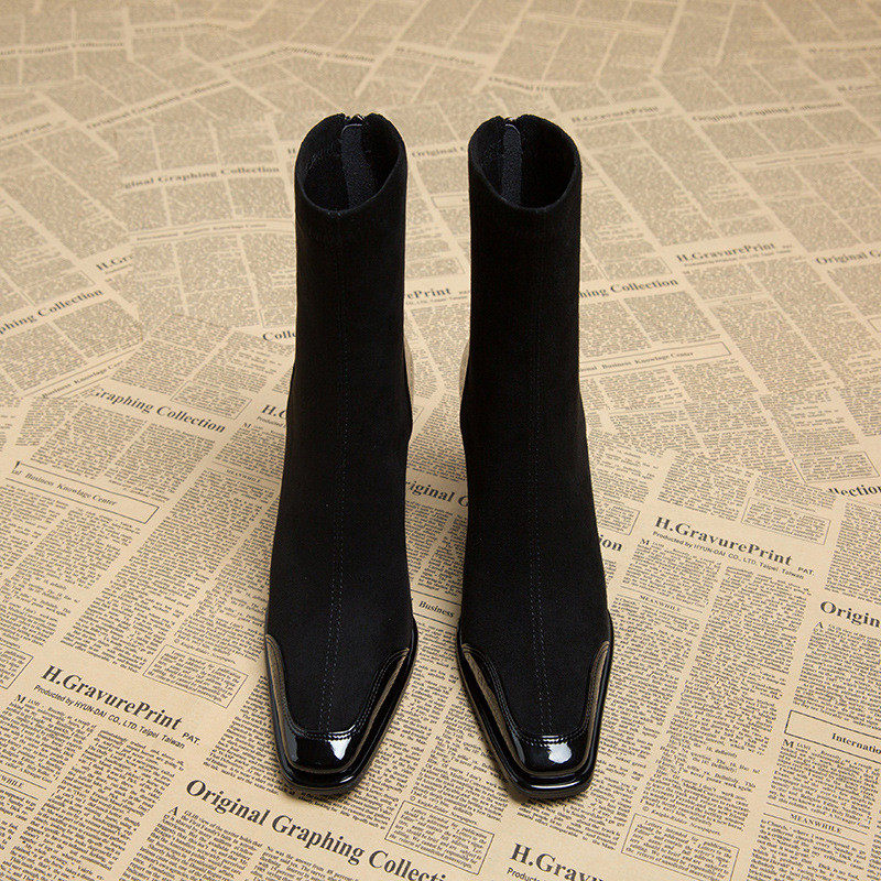 法式 新款 2025气质瘦瘦靴高跟靴子女士短靴 1春秋冬季 23112
