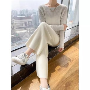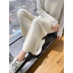 女外穿高腰口袋垂感加厚羊绒拖地直筒长裤 秋冬新款 羊毛针织阔腿裤