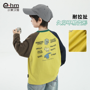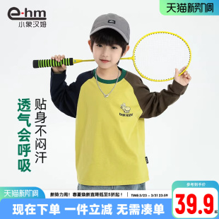 新款 小象汉姆童装 2026春装 T恤纯棉儿童打底衫 男孩上衣潮 男童长袖