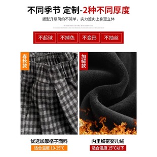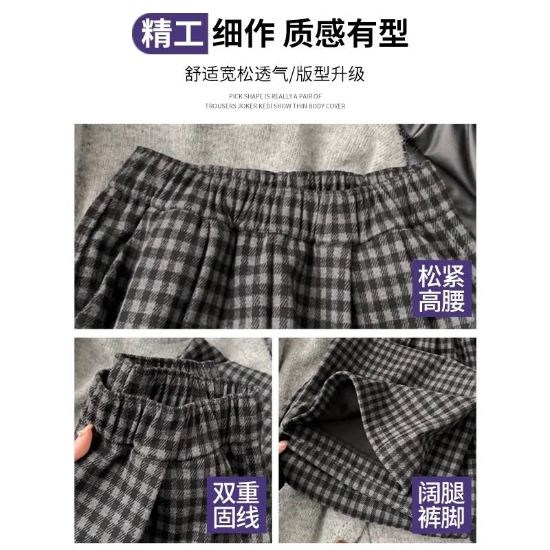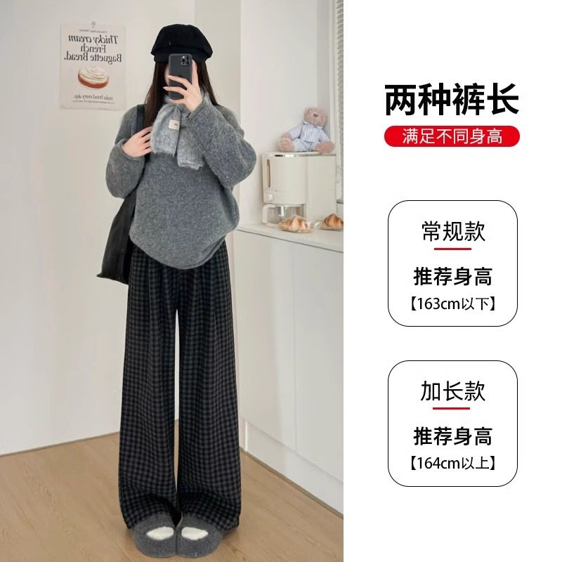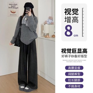 女秋冬加绒150cm穿搭高腰阔腿裤 小个子145窄版 显高黑色毛呢格子裤
