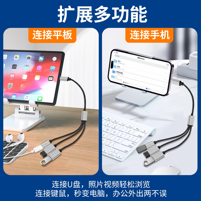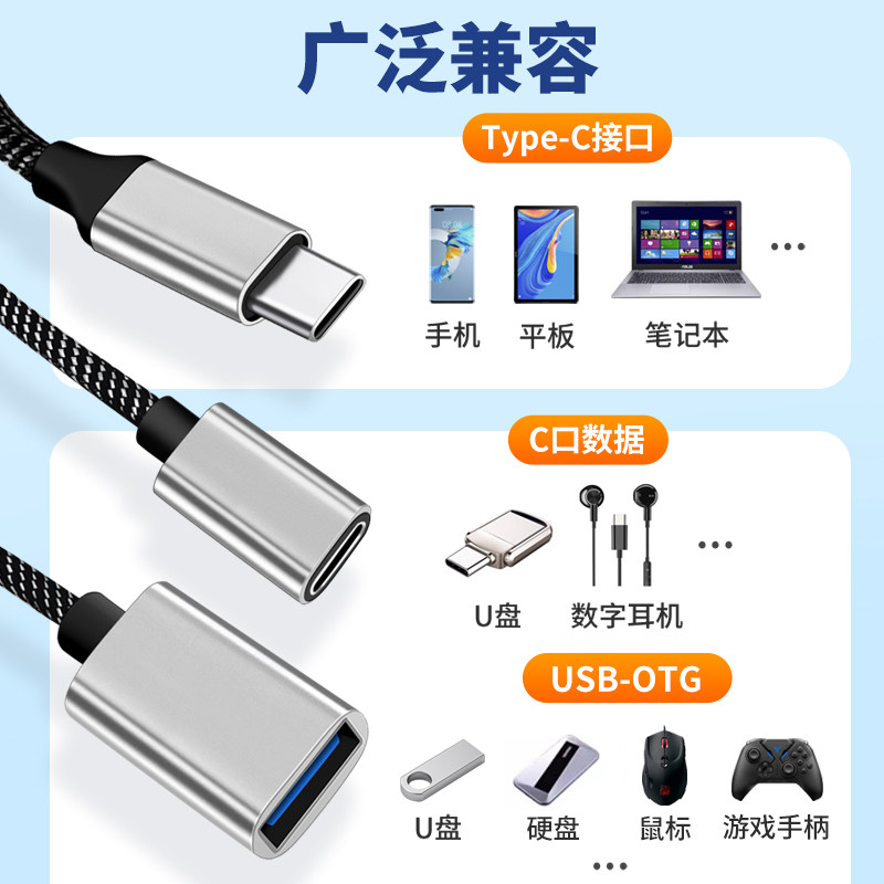TYPEC一分三C母头USB接口分线器TPYEC数据线U盘鼠标键盘硬盘二合一转接线OTG手机平板笔记本电脑适用苹果华为
