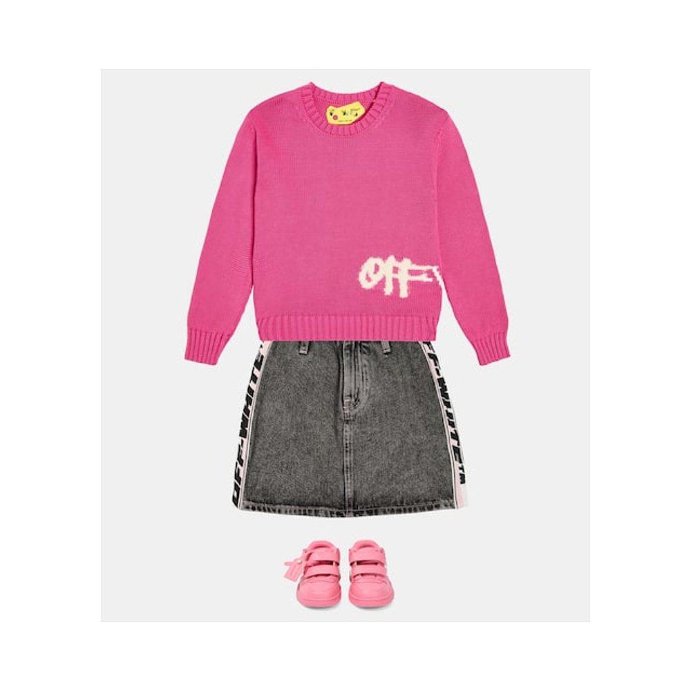 香港直邮off pink粉色 white 徽标棉混纺毛衣童装 舒 女童 1h可退