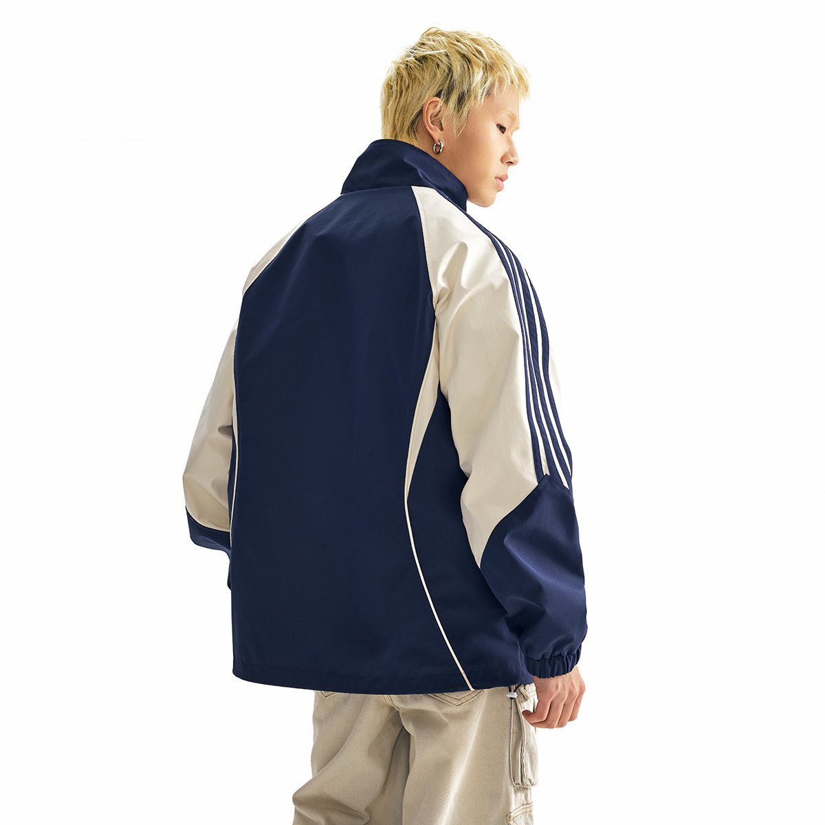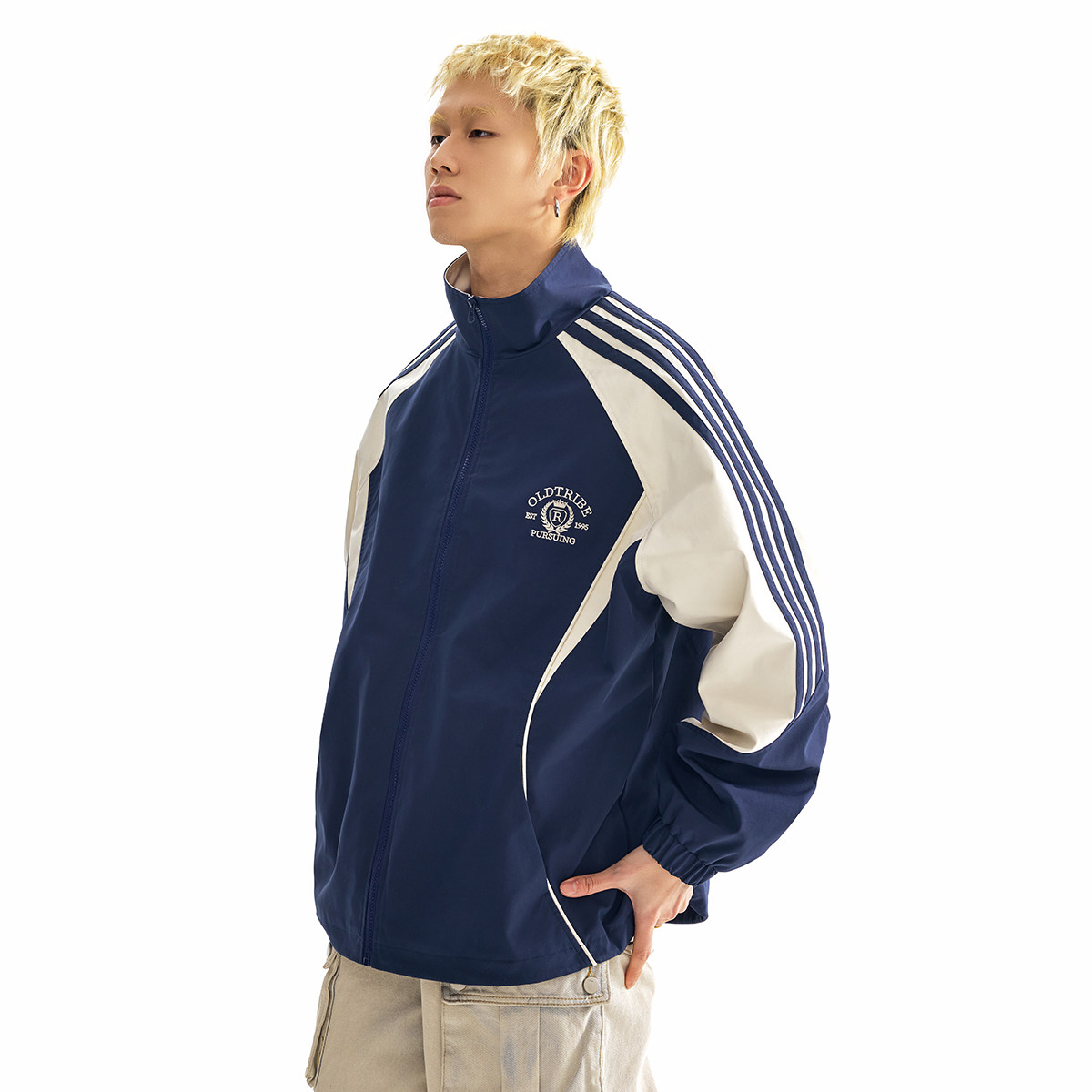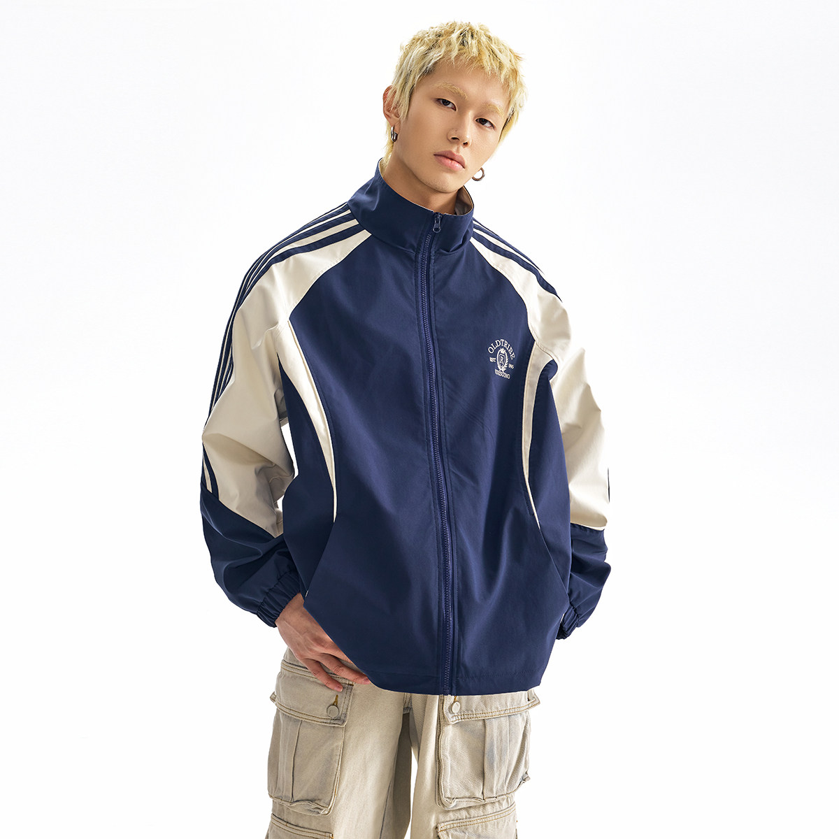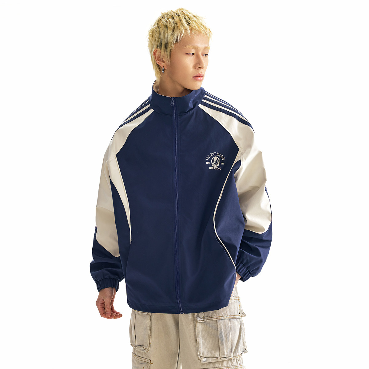 情侣宽松街头上衣国潮外套潮 新款 TIRED美式 运动撞色立领夹克春季