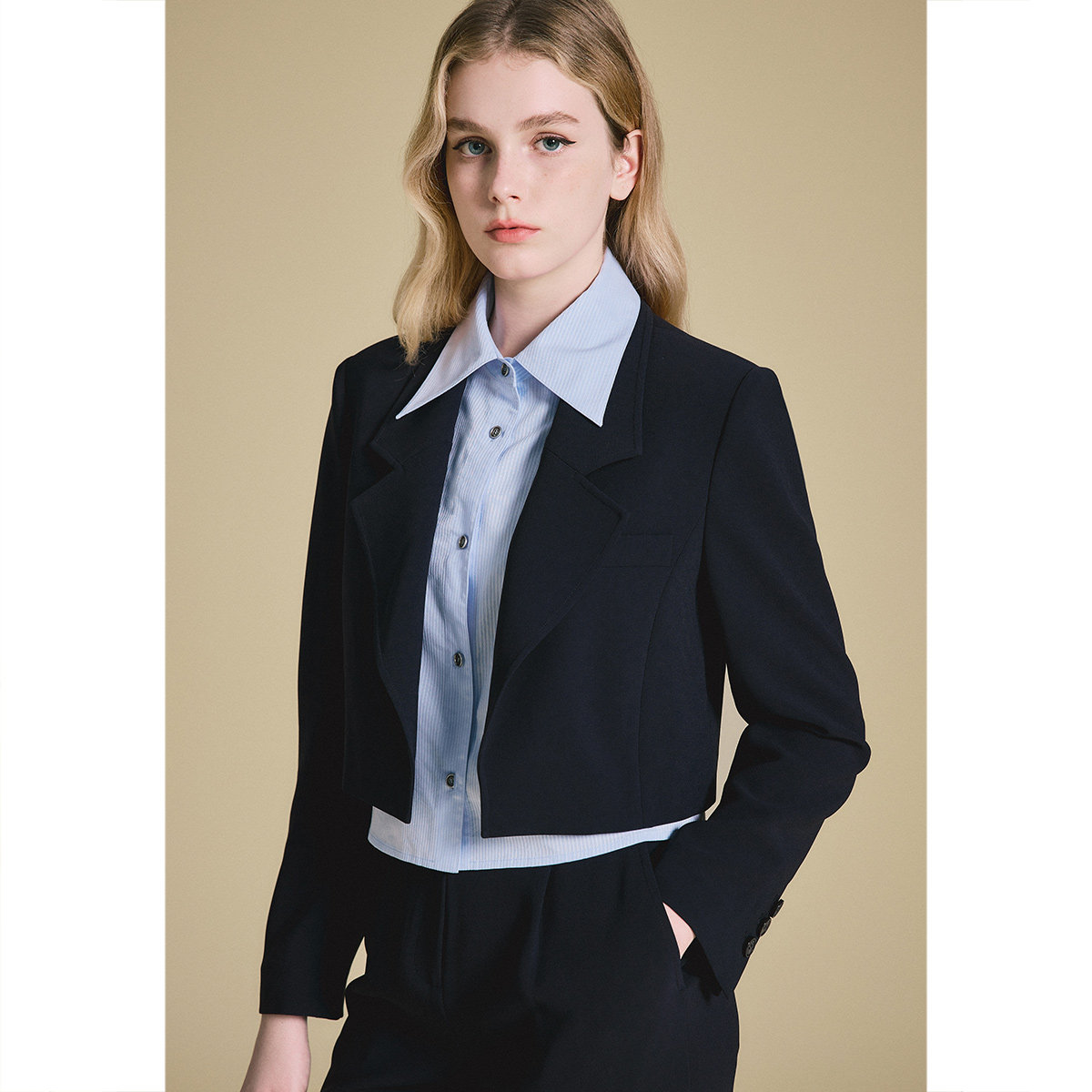 撞色拼接西装 PSALTER诗篇假两件可拆卸衬衫 2025春款 三醋酯