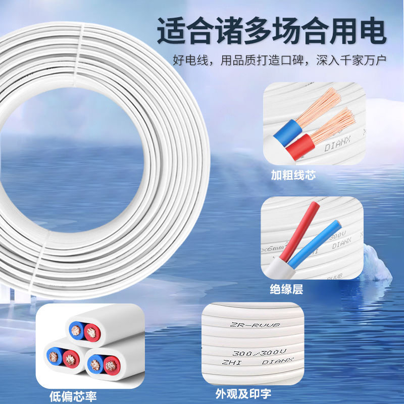 电线国标纯铜芯护套线2芯3芯1.52.54平方软线电缆线电源线铜线