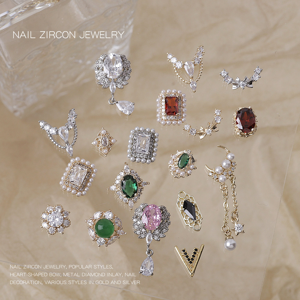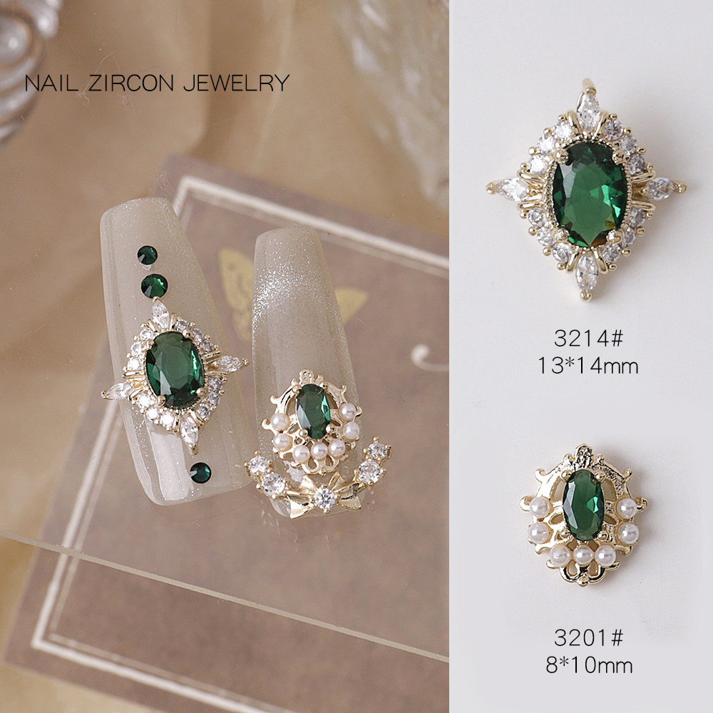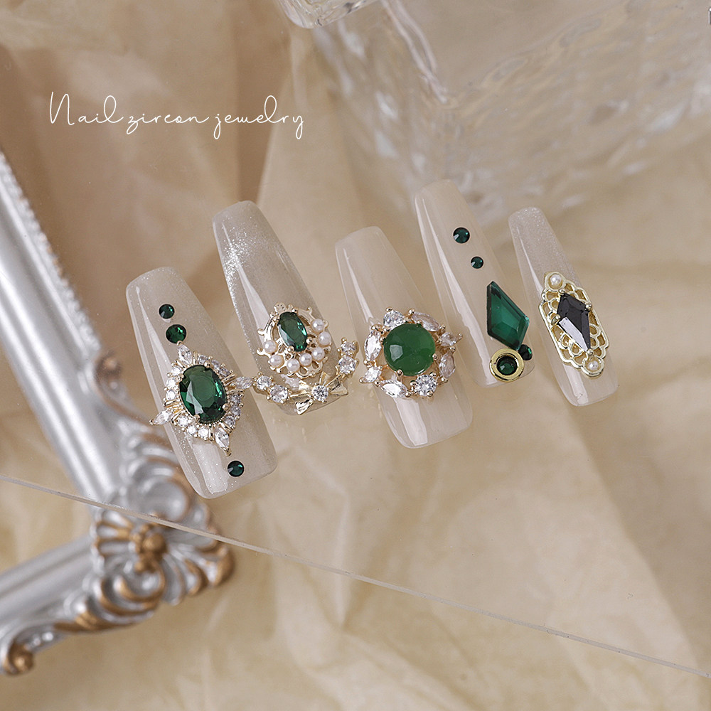 复古美甲锆石饰品祖母绿流苏红宝石指甲贴钻金属电镀网红款 冰糖钻