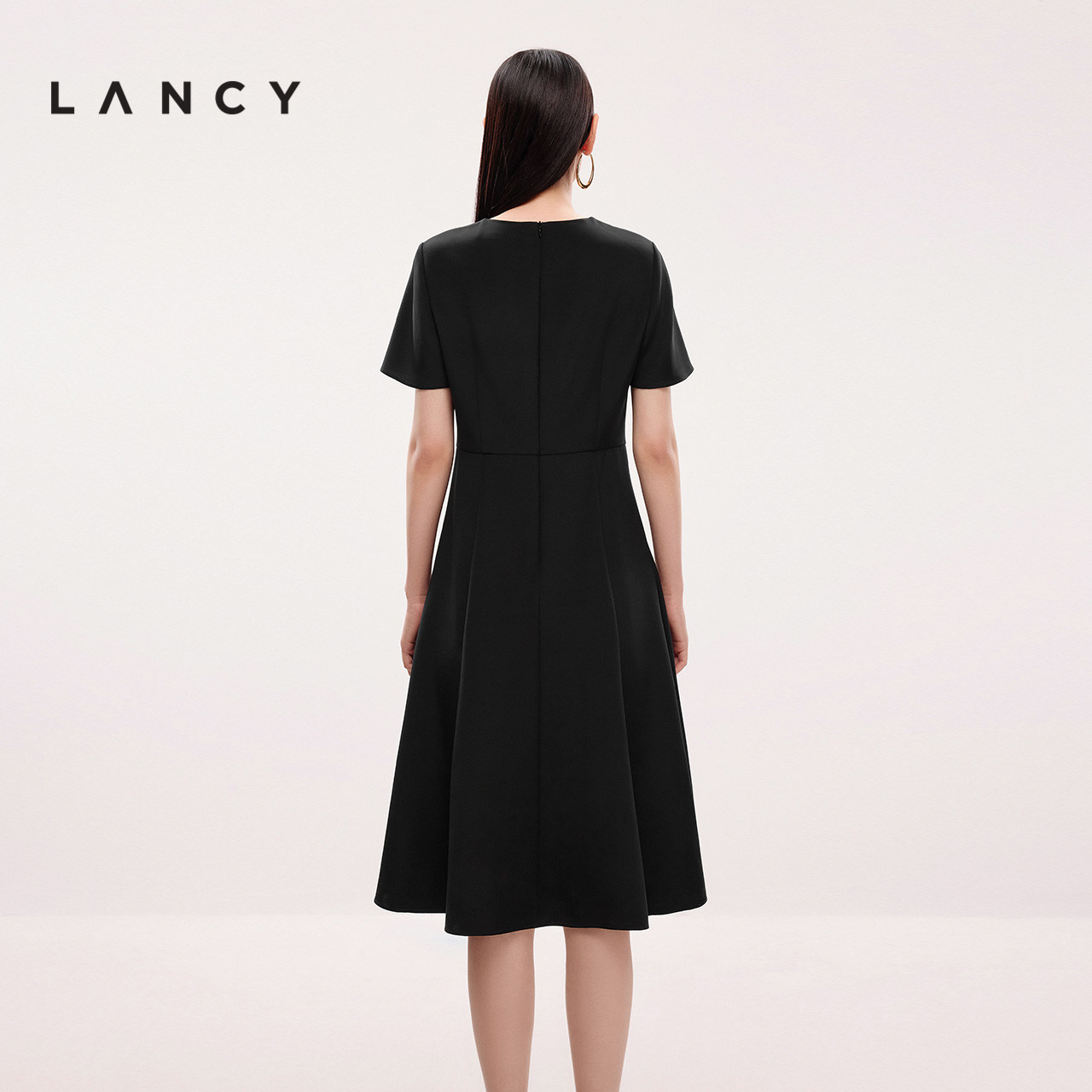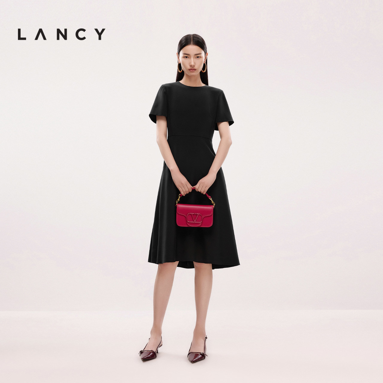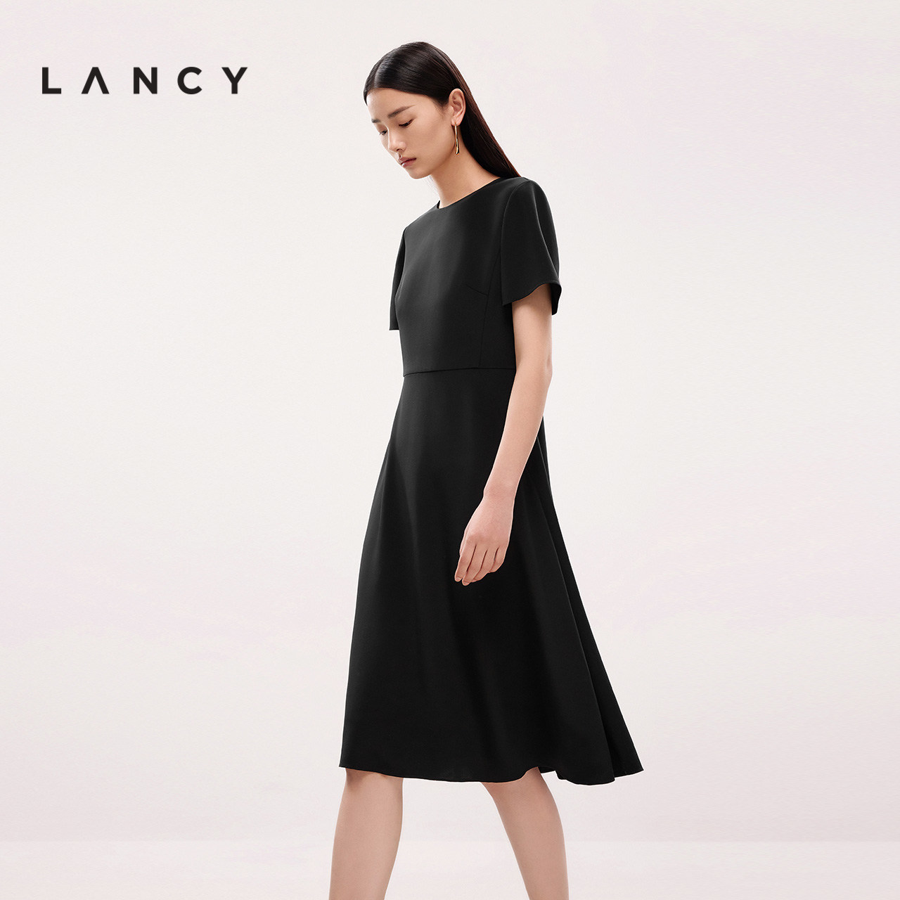 气质高腰桑蚕丝短袖 朗姿2025年夏新款 LANCY 圆领连衣裙女 真丝