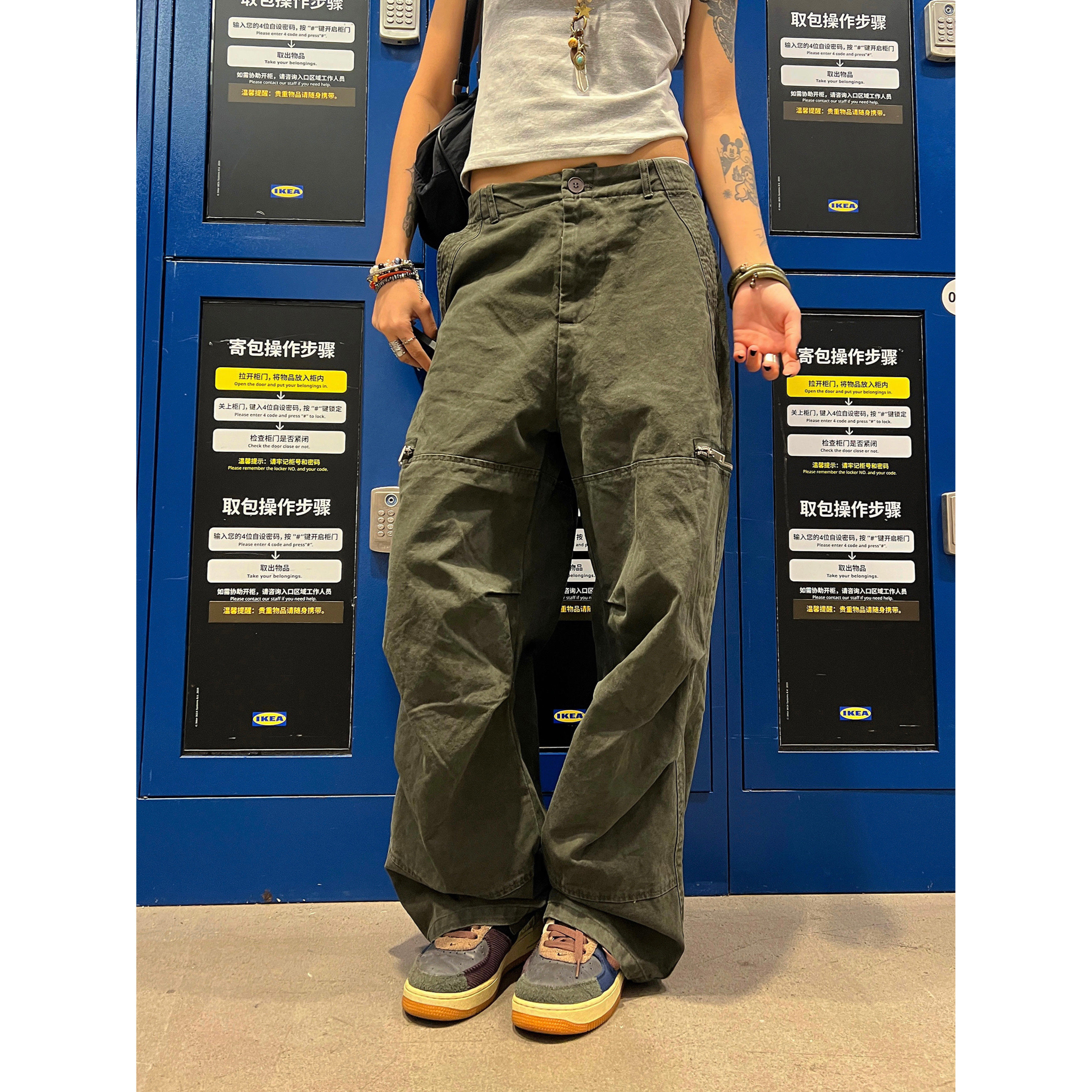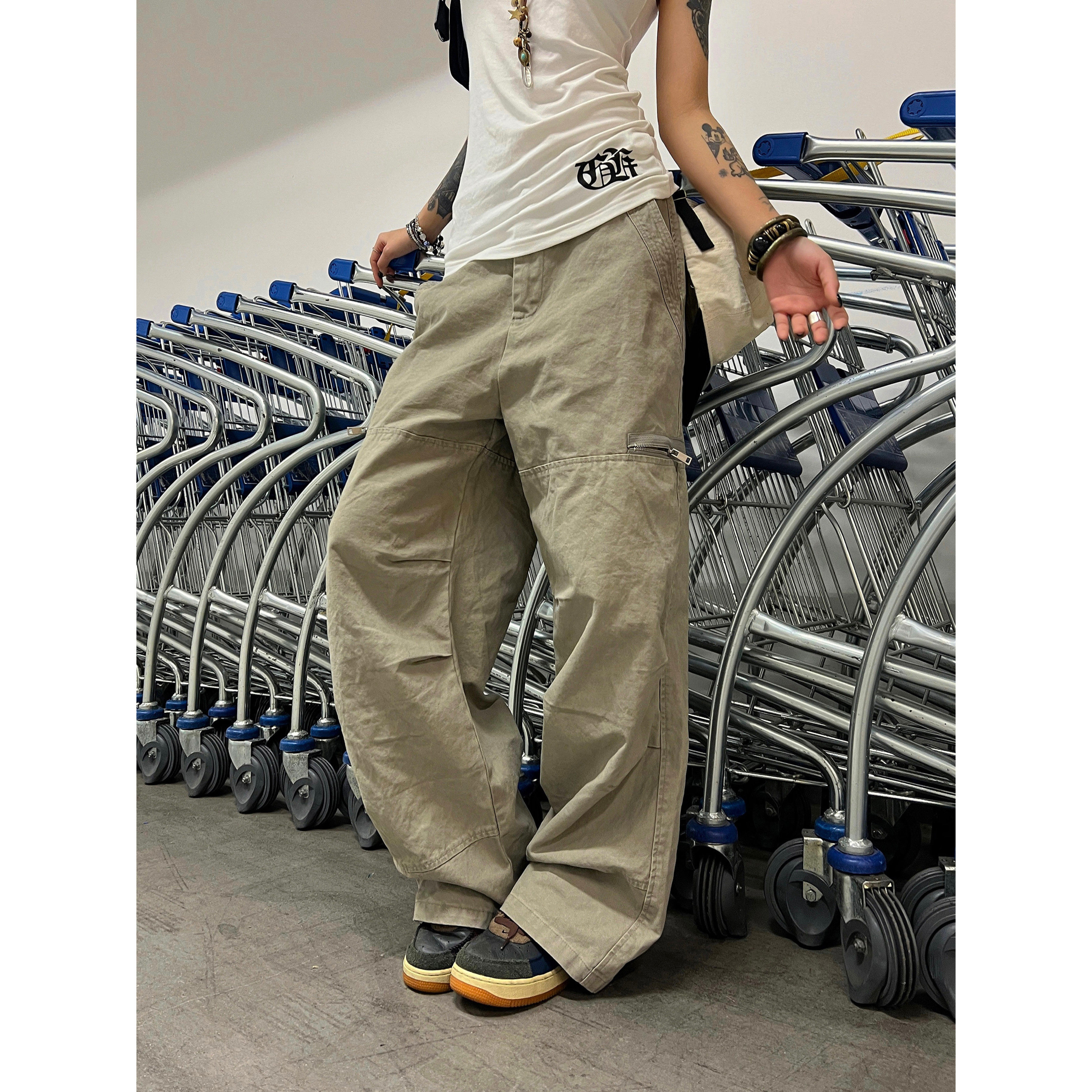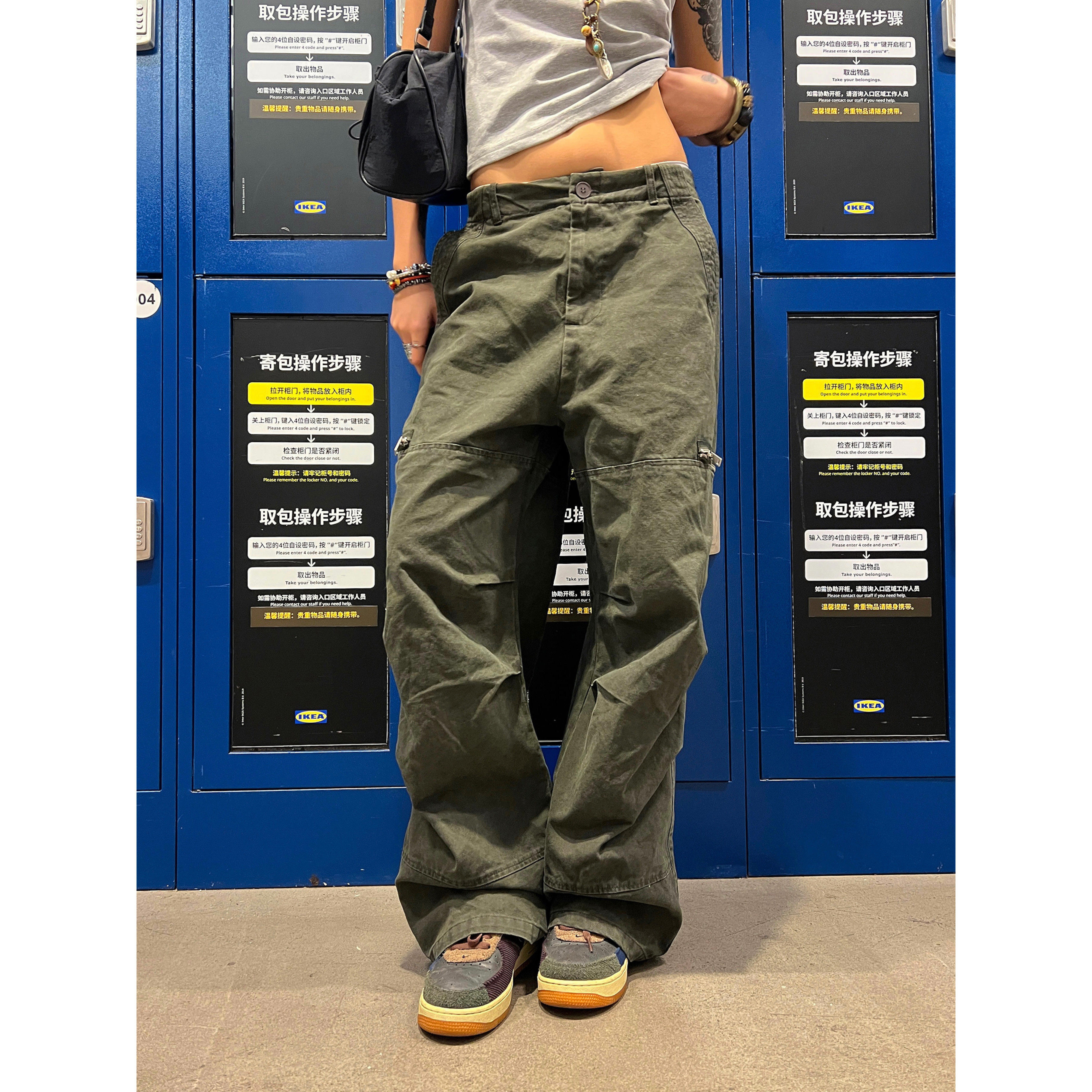 裤 复古水洗工装 拉链口袋褶皱设计宽松直筒百搭男女 2026美式 F383