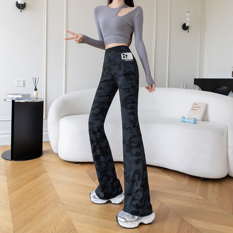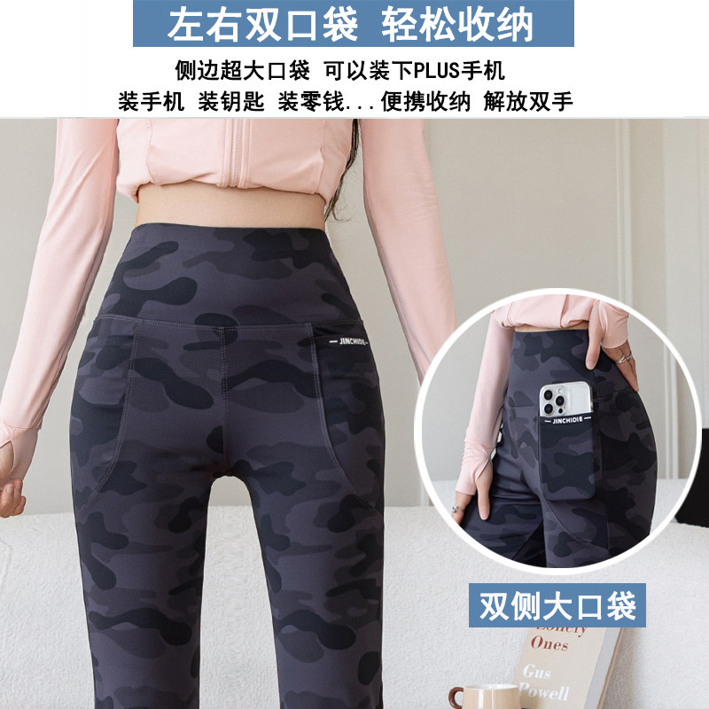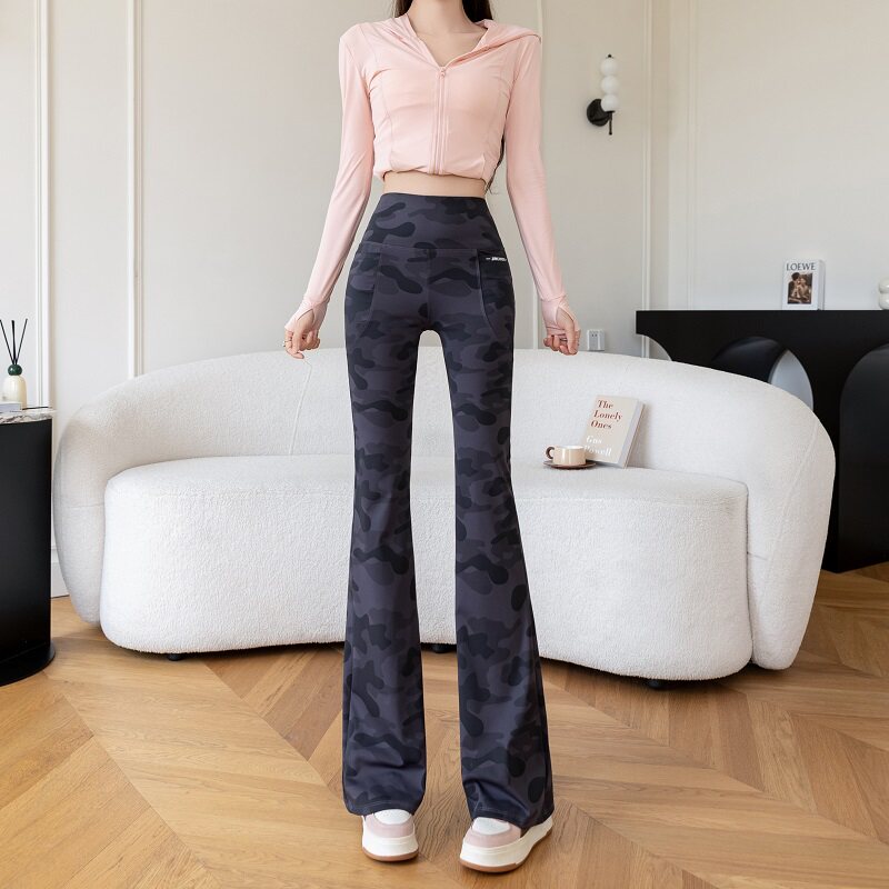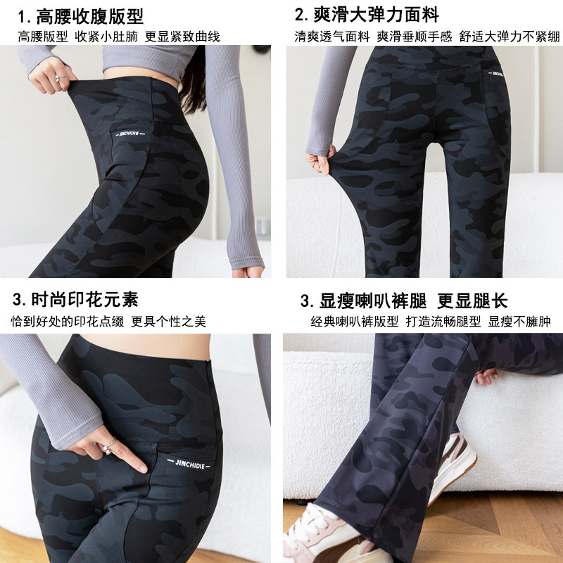 收腹休闲瑜伽喇叭裤 迷彩微喇叭鲨鱼裤 外穿高腰大码 新款 女2026春季