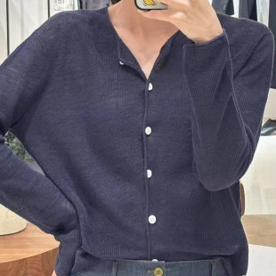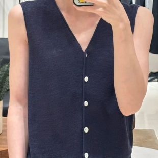 麻丝混纺V领套衫 现货 开衫 环保种植亚麻针织马甲 背心 25春新款