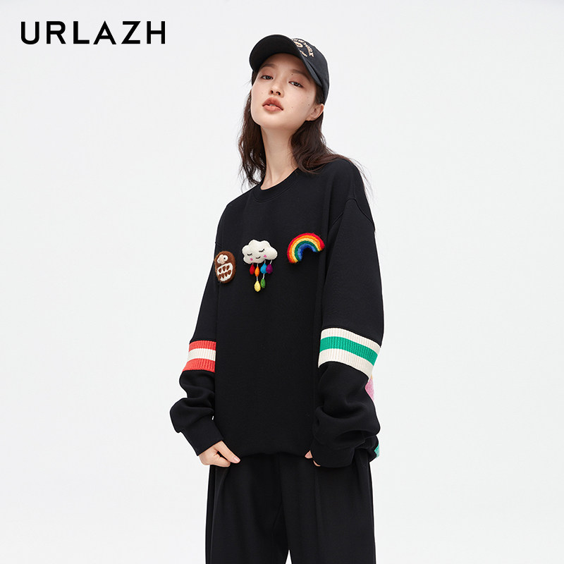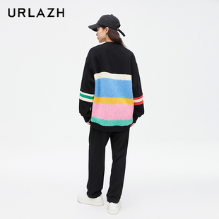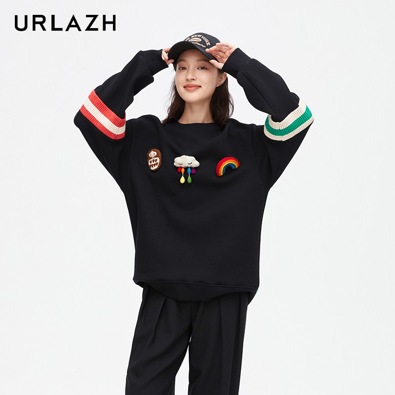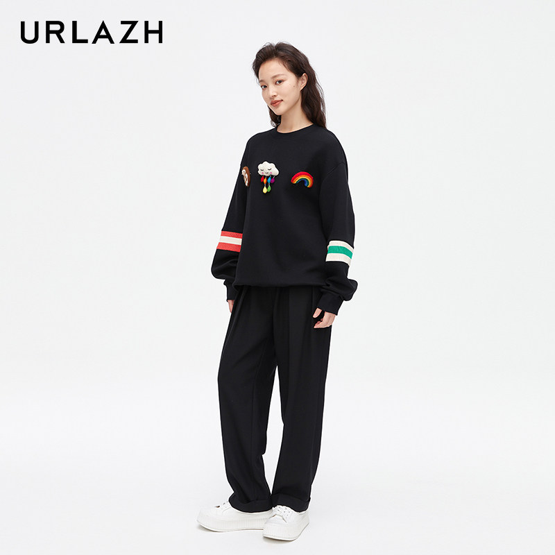 URLAZH有兰新款 圆领卫衣女LM3SW90 黑色简约休闲圆领长袖