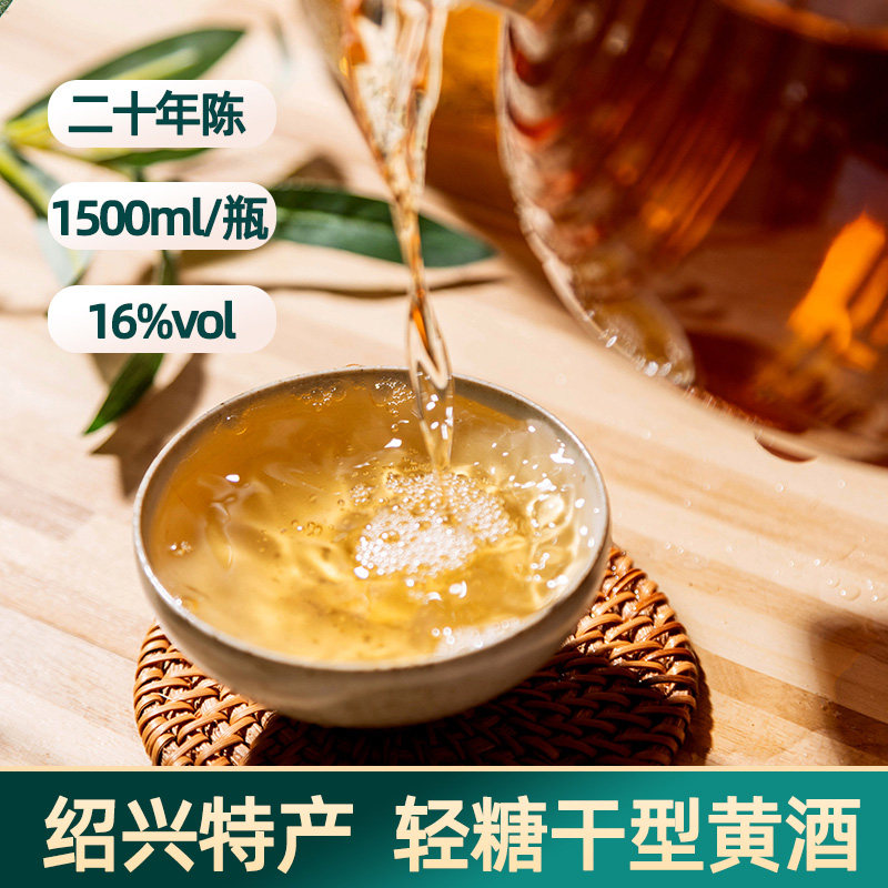 绍山鉴水二十年本色黄酒1.5L瓶装 花雕酒绍兴特产干型无焦糖色老酒