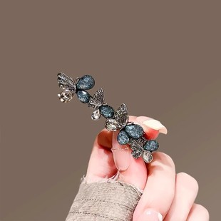 韩国东大门气质丝绒水钻蝴蝶结懒人香蕉夹高级感扭扭夹子复古发饰