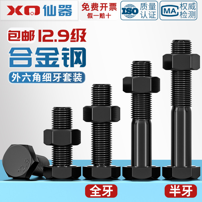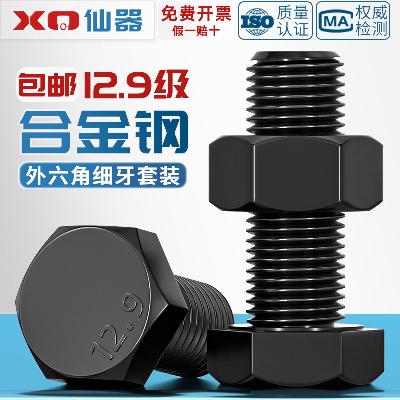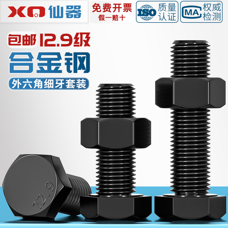 12.9级细牙外六角螺丝细丝螺母螺钉细扣幼牙螺栓套装 M36 M8M10M12